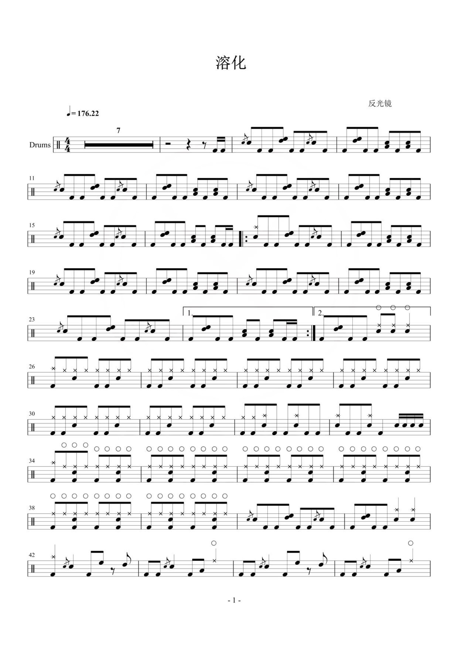 • 溶化鼓谱 - 反光镜乐队 - 架子鼓谱第1张