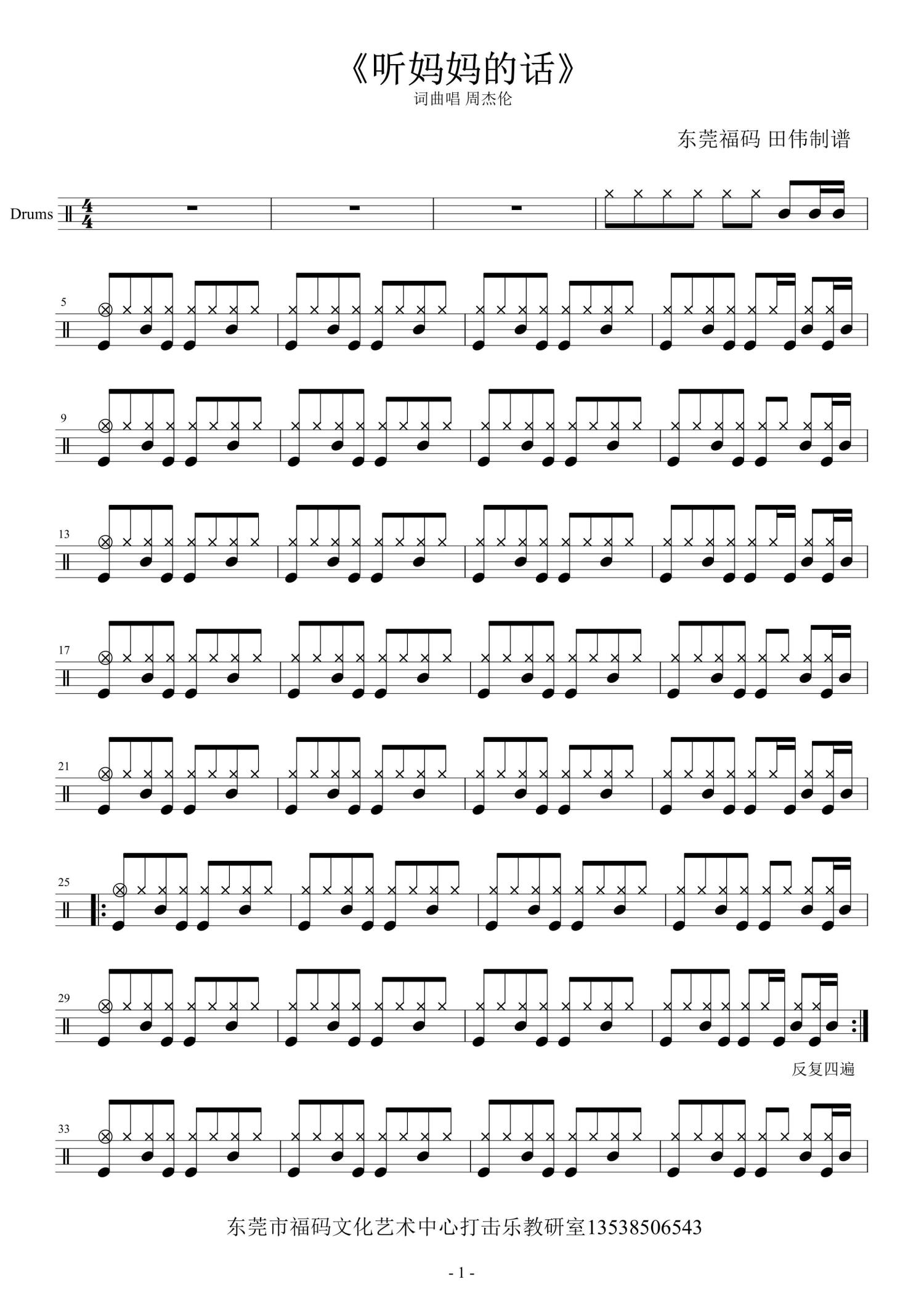 • 听妈妈的话鼓谱 - 周杰伦 - 架子鼓谱第1张