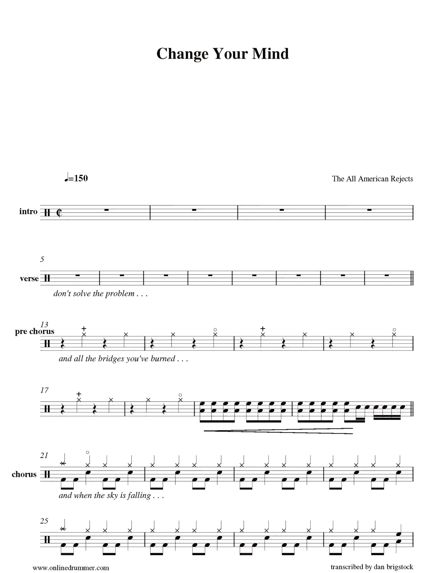 Change your mind鼓谱 - "All American Rejects - 架子鼓谱
