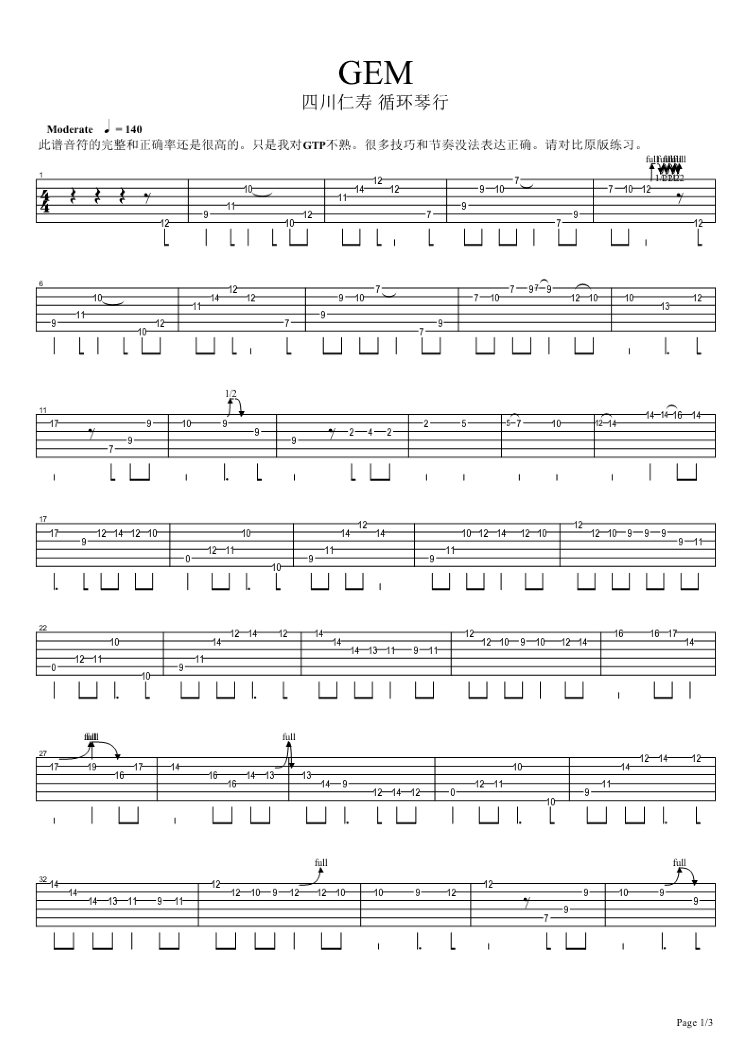 GEM吉他谱 - 吉他独奏谱