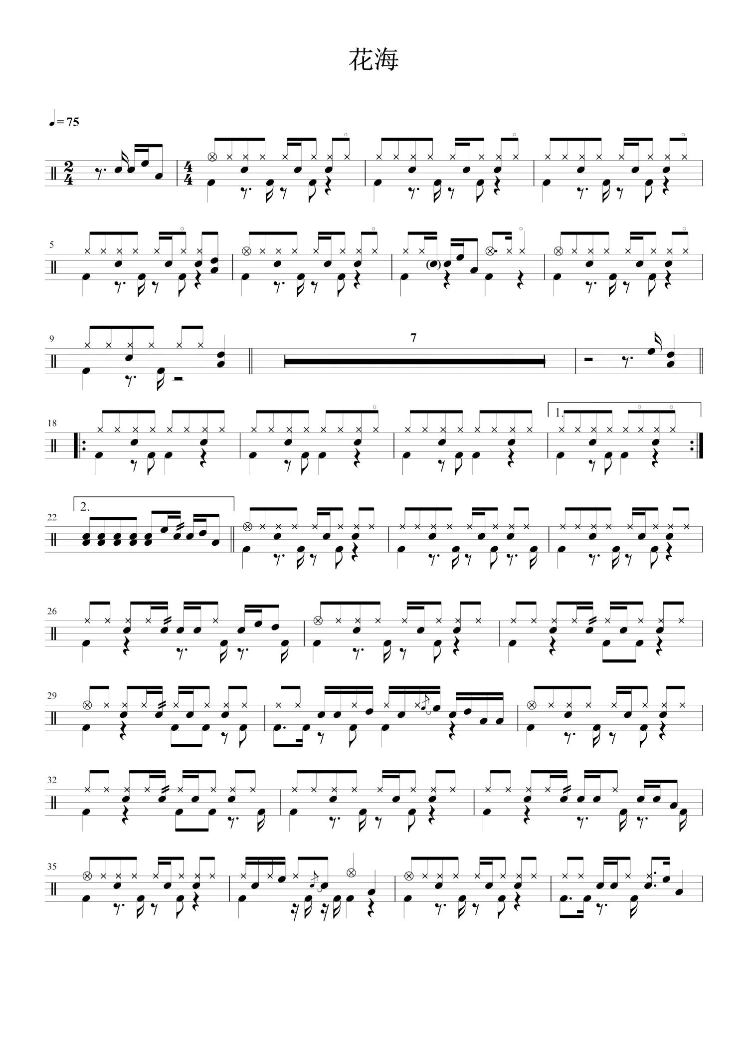 • 花海鼓谱 - 周杰伦 - 架子鼓谱第1张