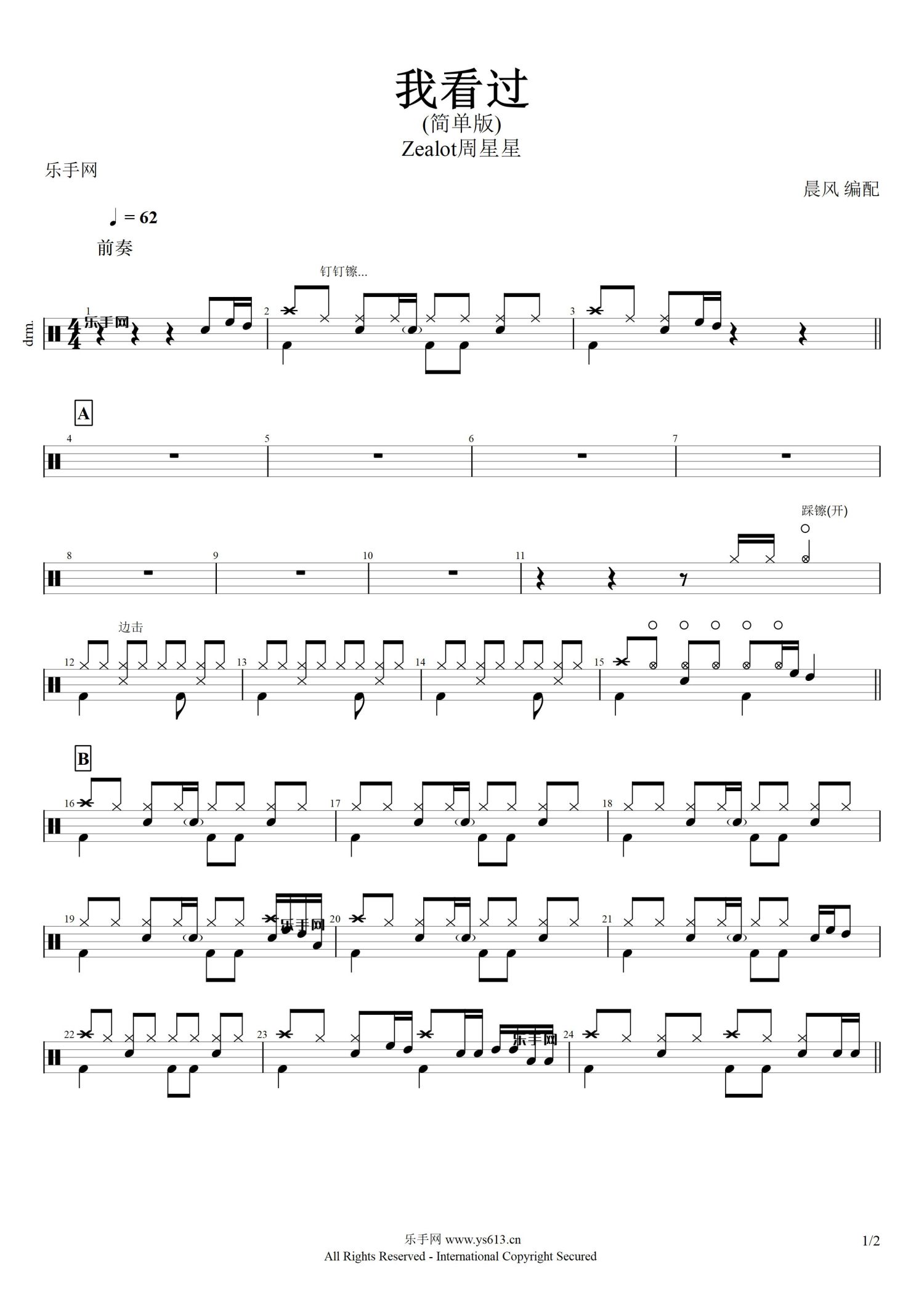 • 我看过简单版)鼓谱 - Zealot周星星 - 架子鼓谱第1张