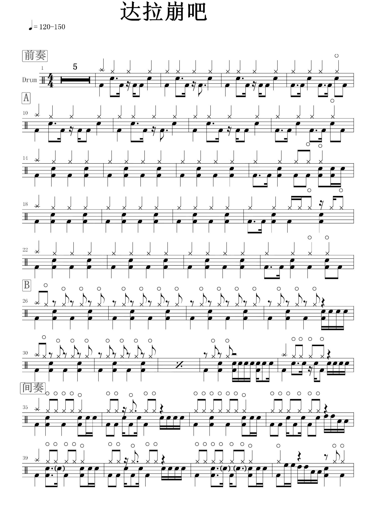 当前位置:琴谱网>架子鼓谱>达拉崩吧