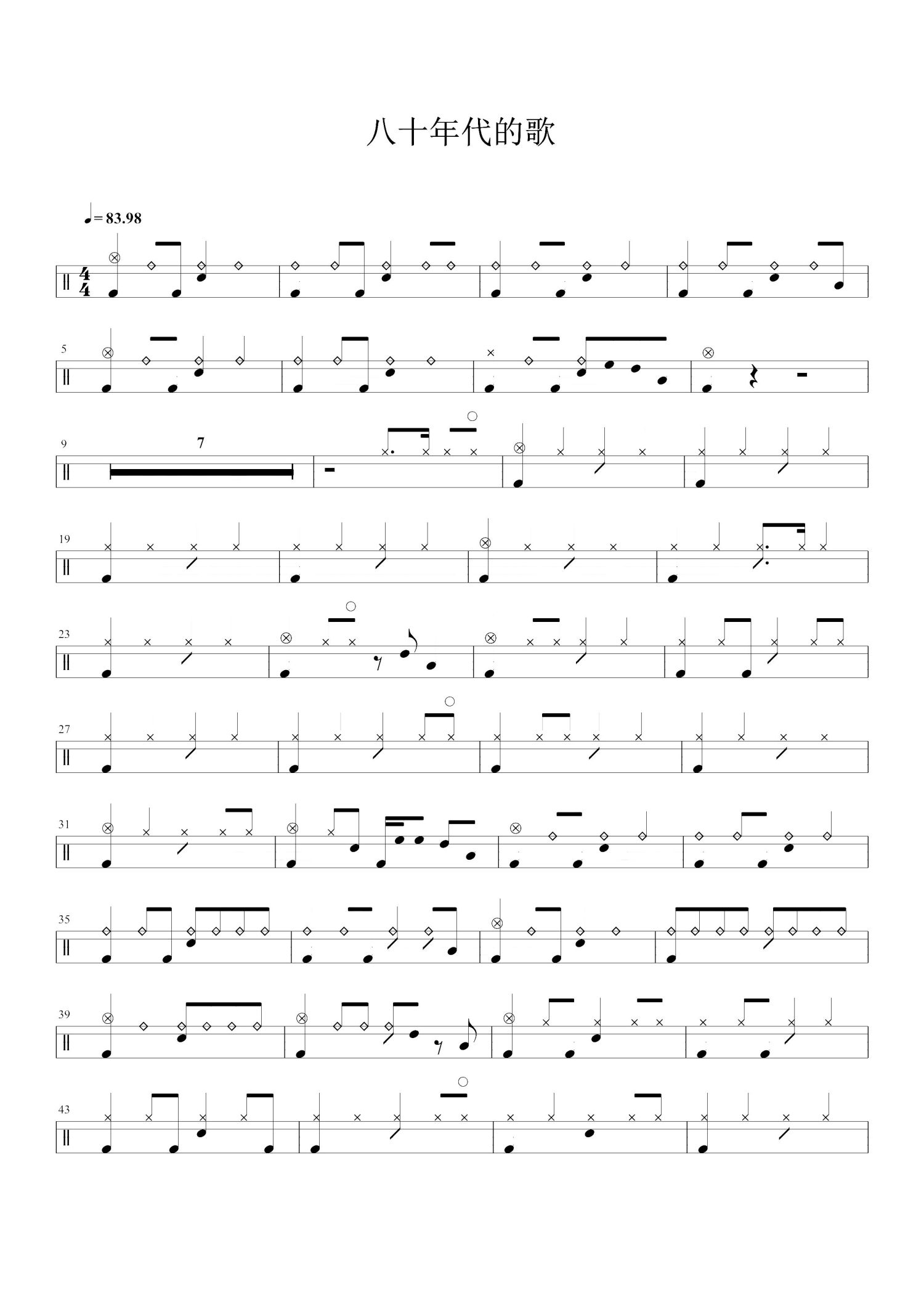• 八十年代的歌鼓谱 - 赵雷 - 架子鼓谱第1张