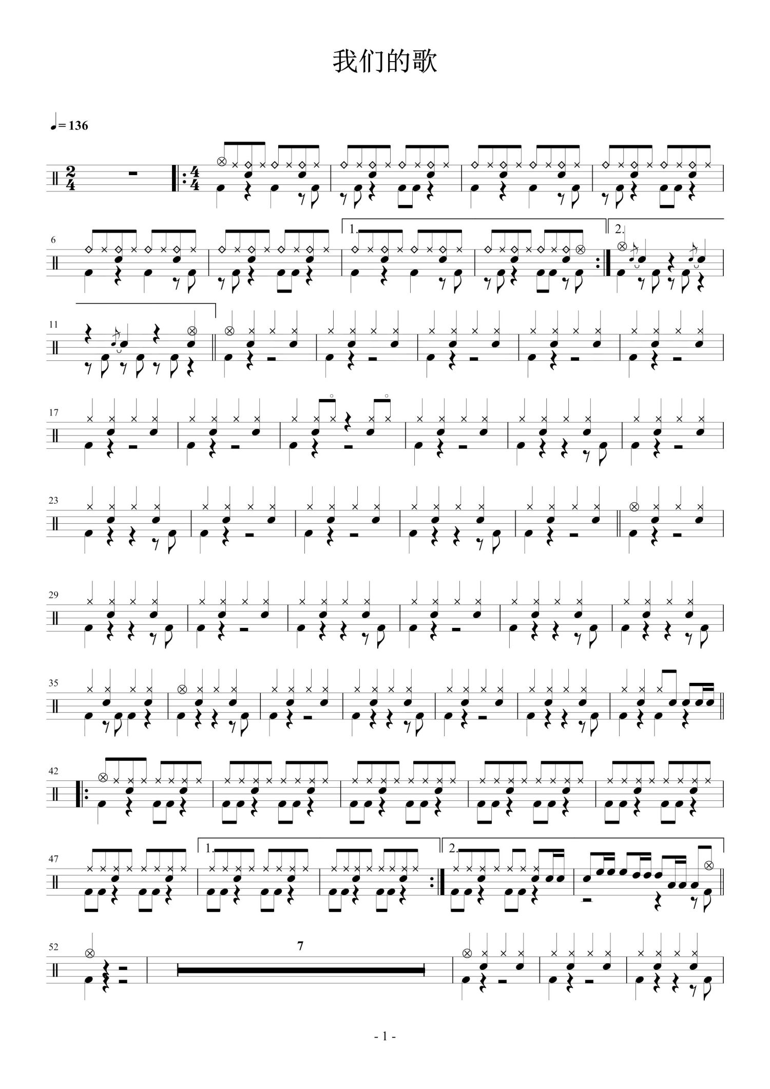 • 我们的歌鼓谱 - 反光镜乐队 - 架子鼓谱第1张