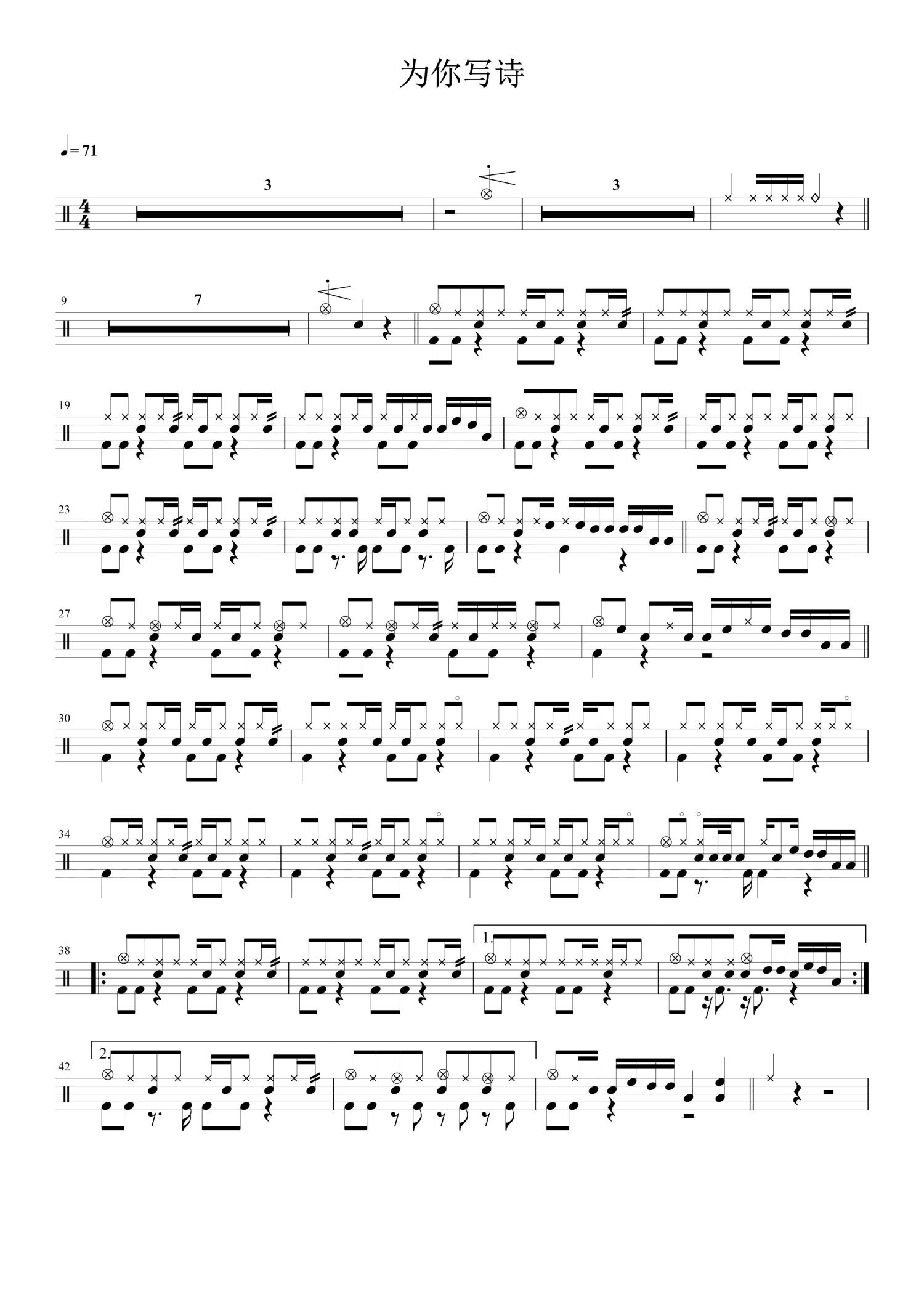 • 为你写诗鼓谱 - 吴克群 - 架子鼓谱第1张