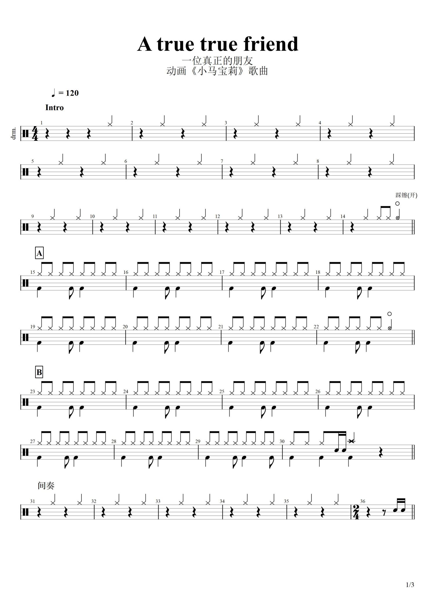 • A true true friend鼓谱 - 六主角 - 架子鼓谱第1张
