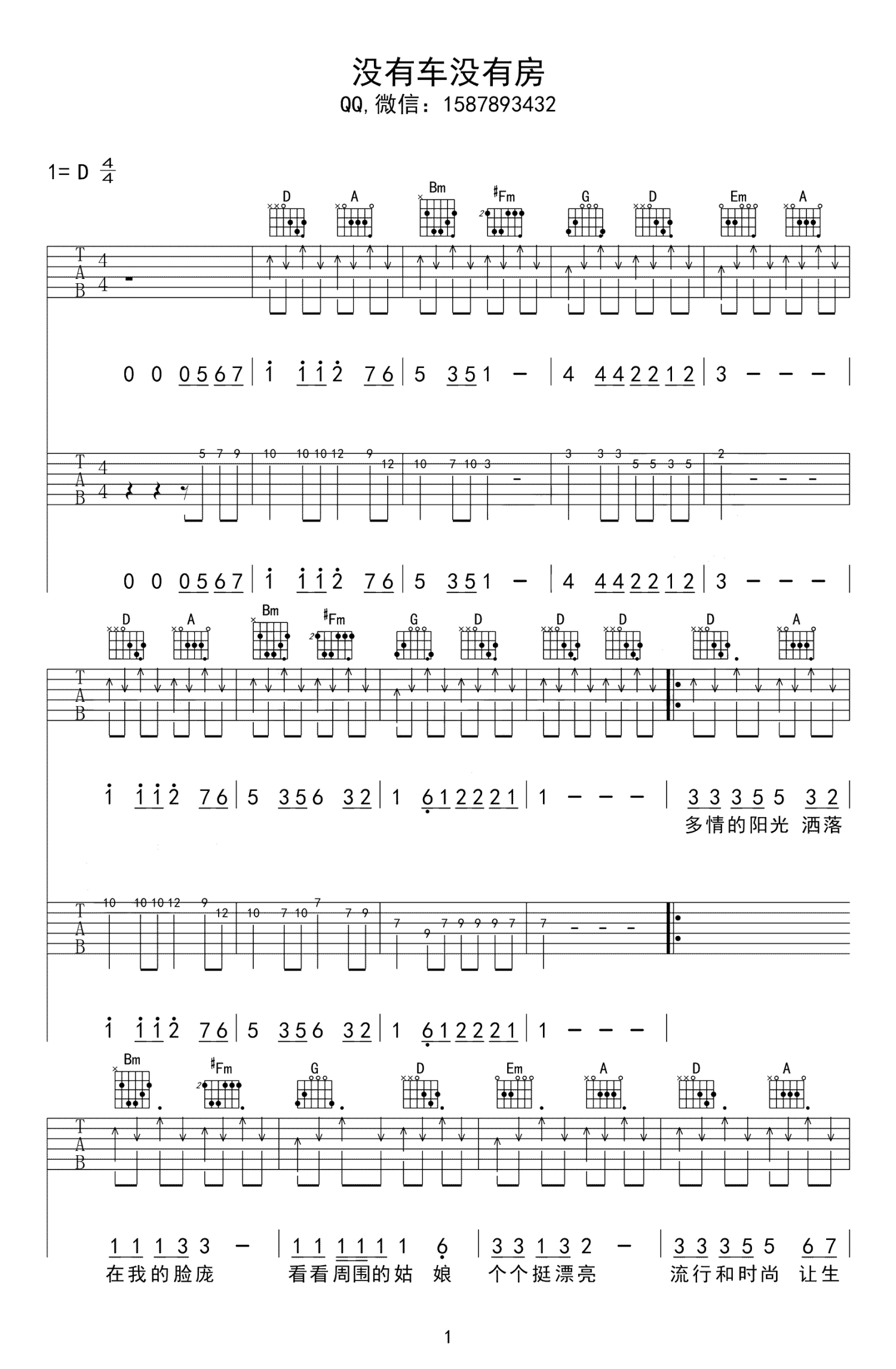 当前位置:琴谱网>吉他弹唱>没有车没有房
