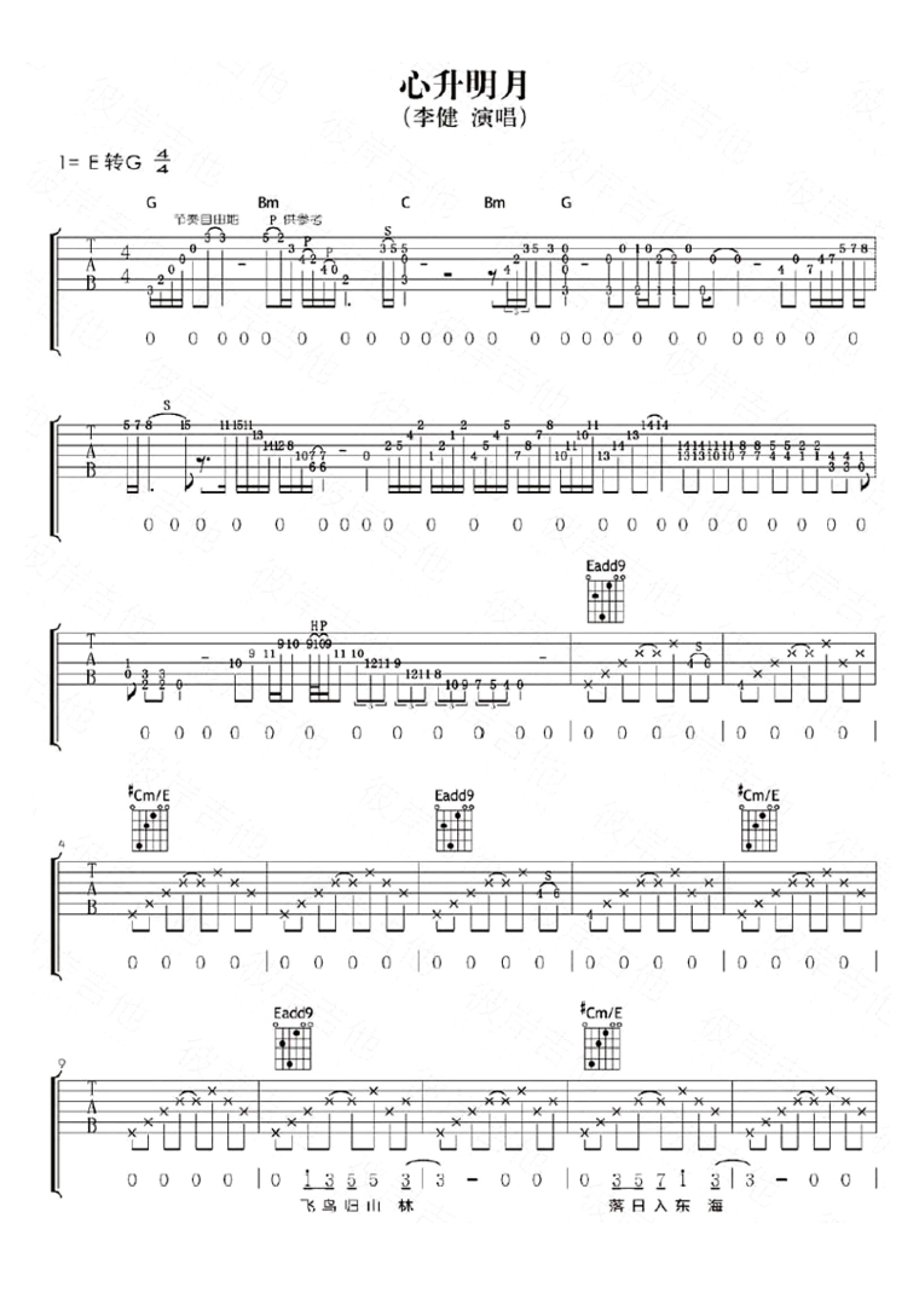 曲谱介绍: 李健《心升明月》吉他谱_E调吉他弹唱谱