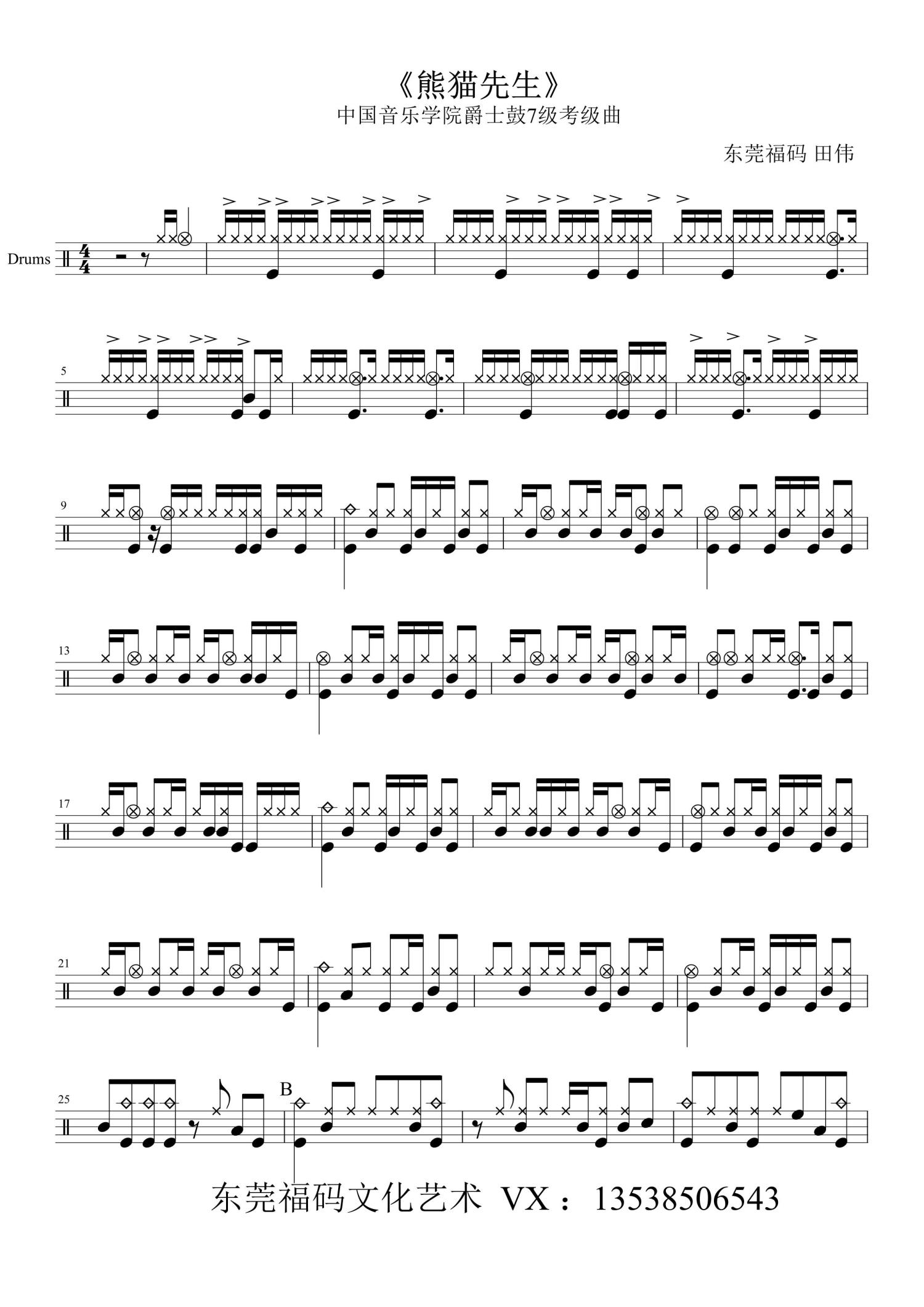 熊猫先生鼓谱 - 中国音乐学院爵士鼓7级 - 架子鼓谱