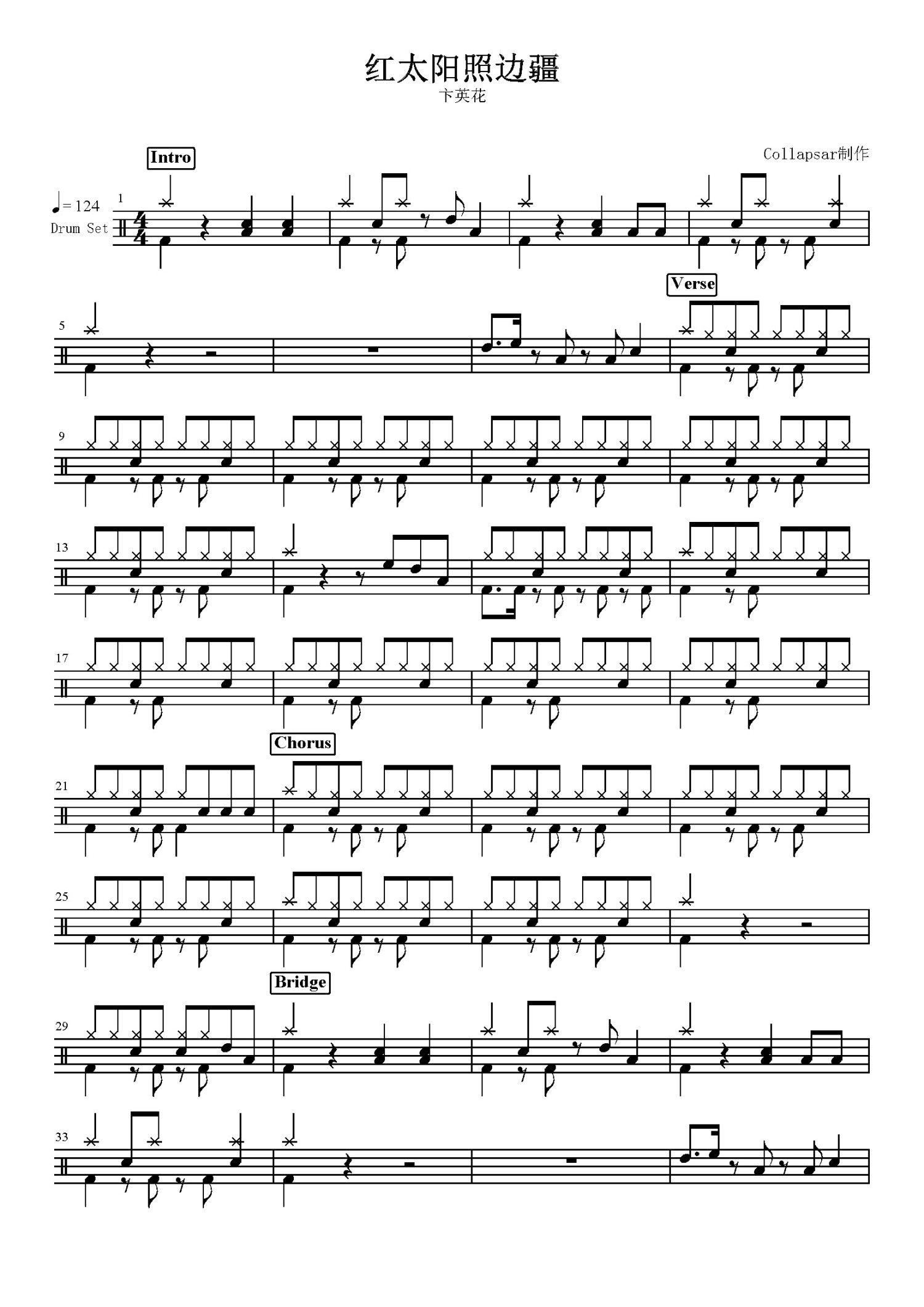 • 红太阳照边疆鼓谱 - 卞英花 - 架子鼓谱第1张