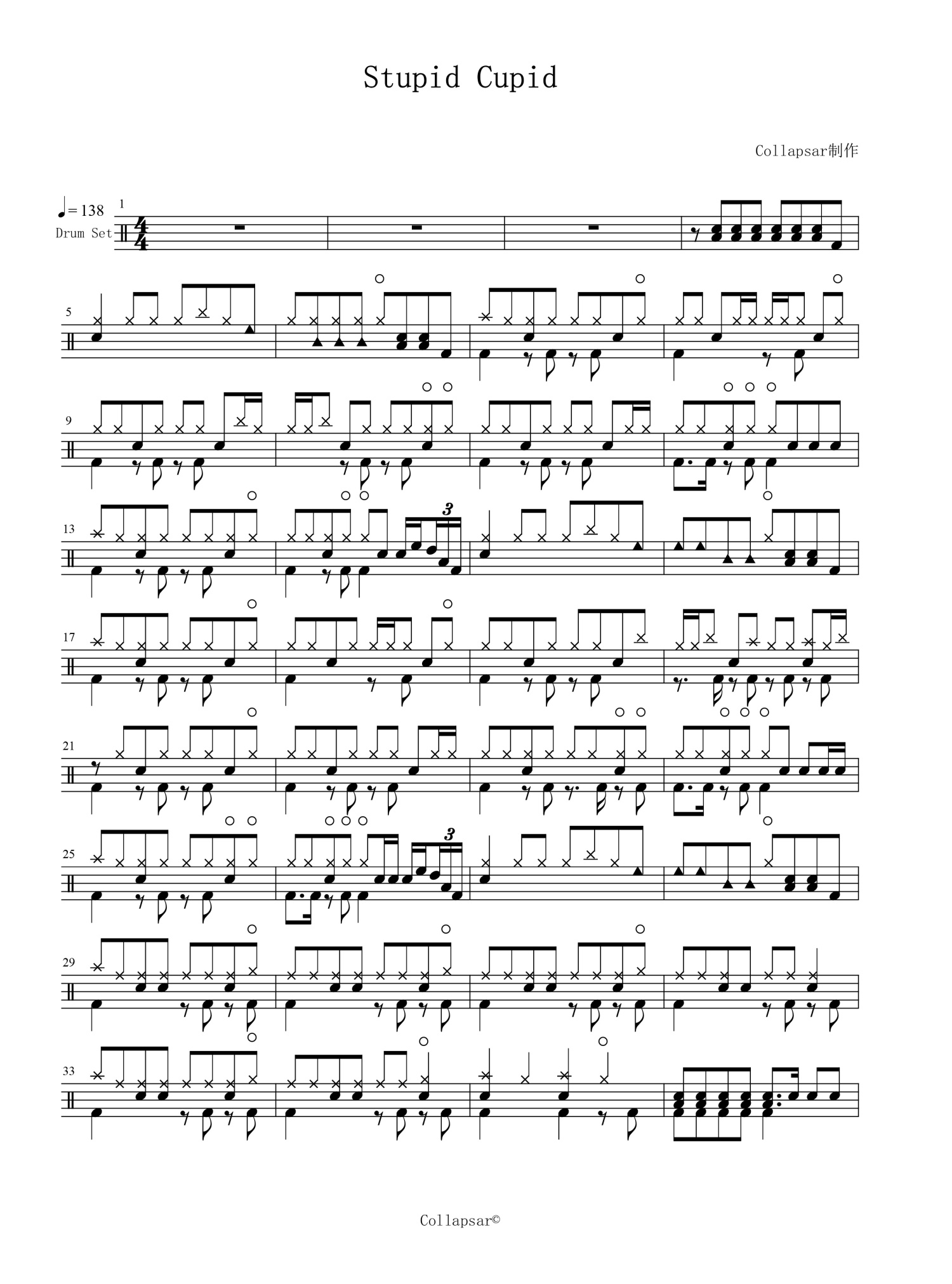 • Stupid Cupid鼓谱 - Stupid Cupid - 架子鼓谱第1张