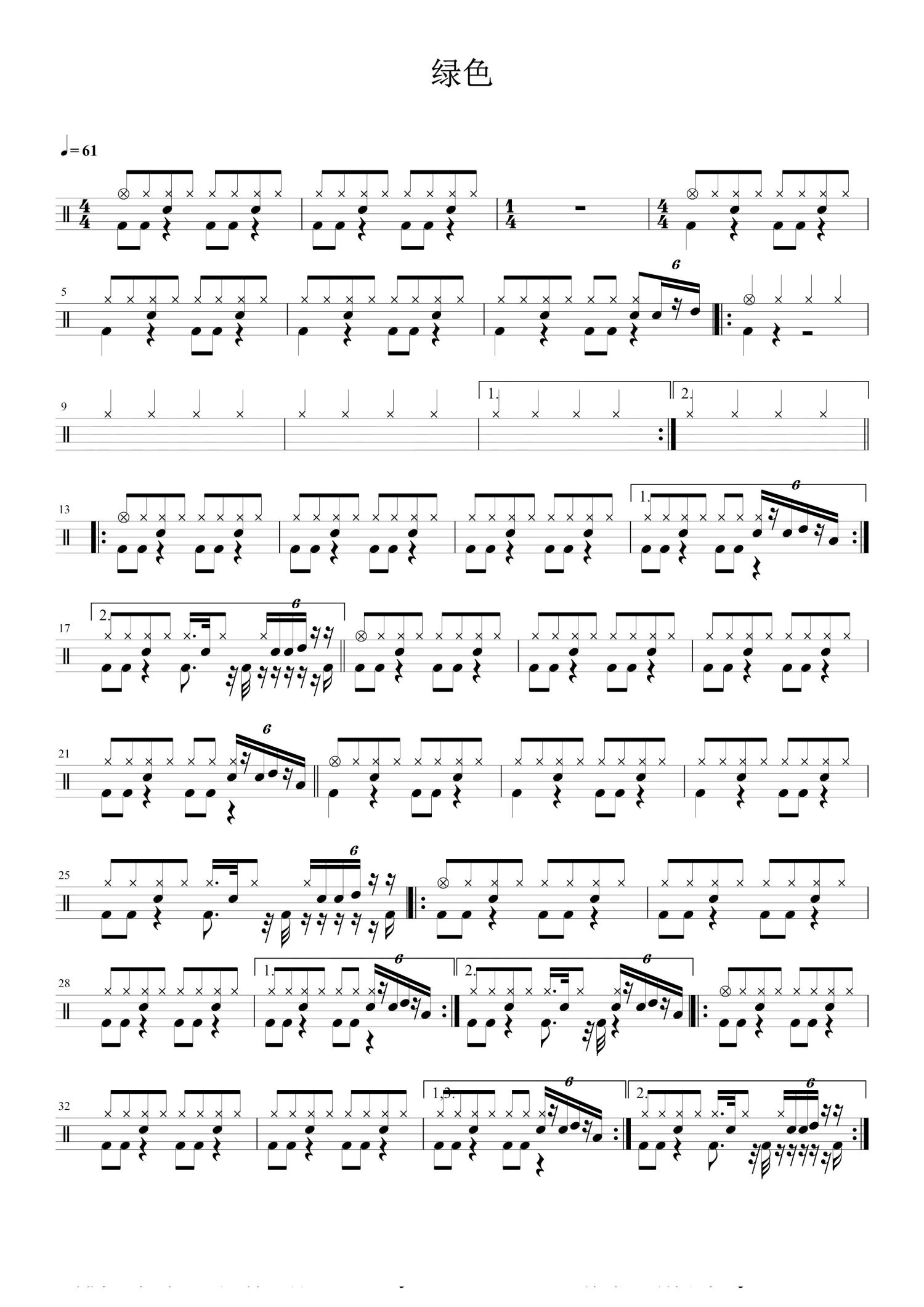 当前位置:琴谱网>架子鼓谱>绿色