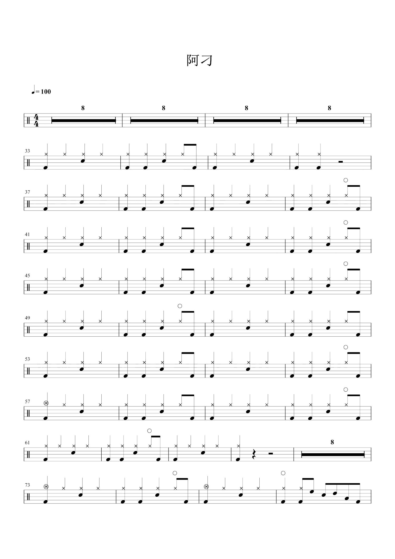 阿刁鼓谱 - 赵雷 - 架子鼓谱