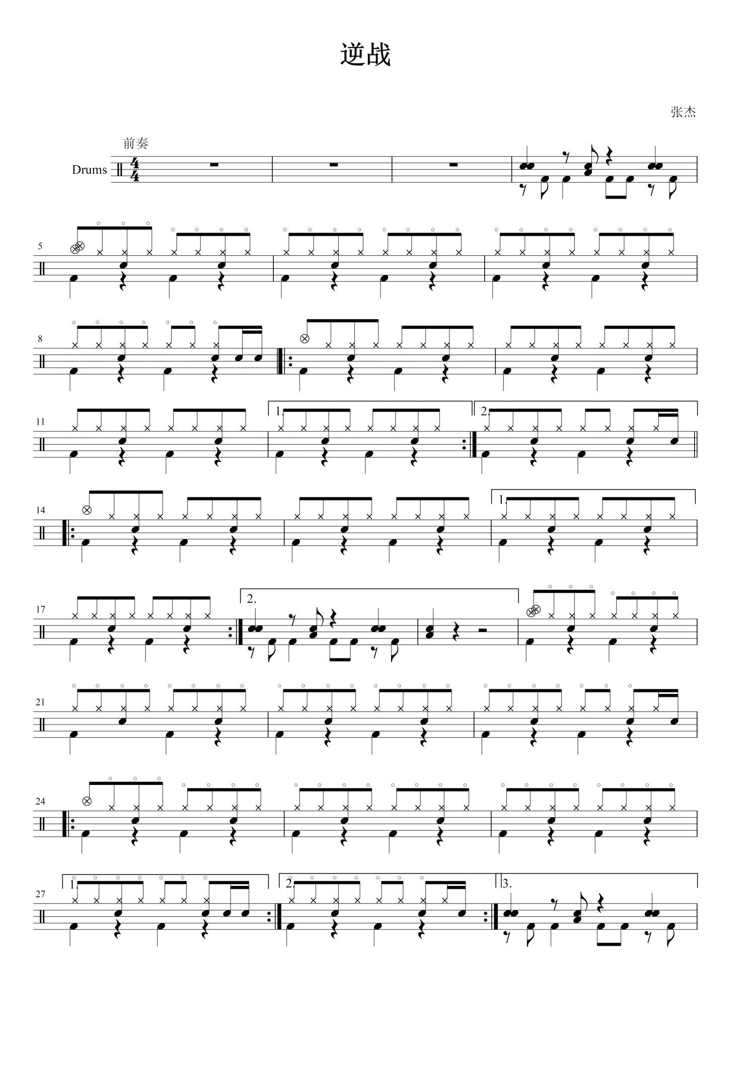 • 逆战鼓谱 - 张杰 - 架子鼓谱第1张