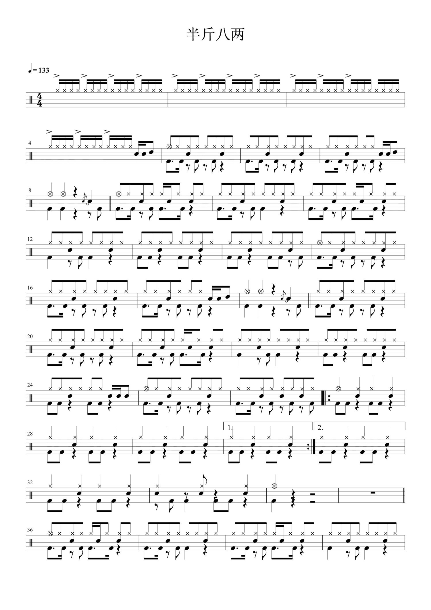 • 半斤八两鼓谱 - Beyond - 架子鼓谱第1张