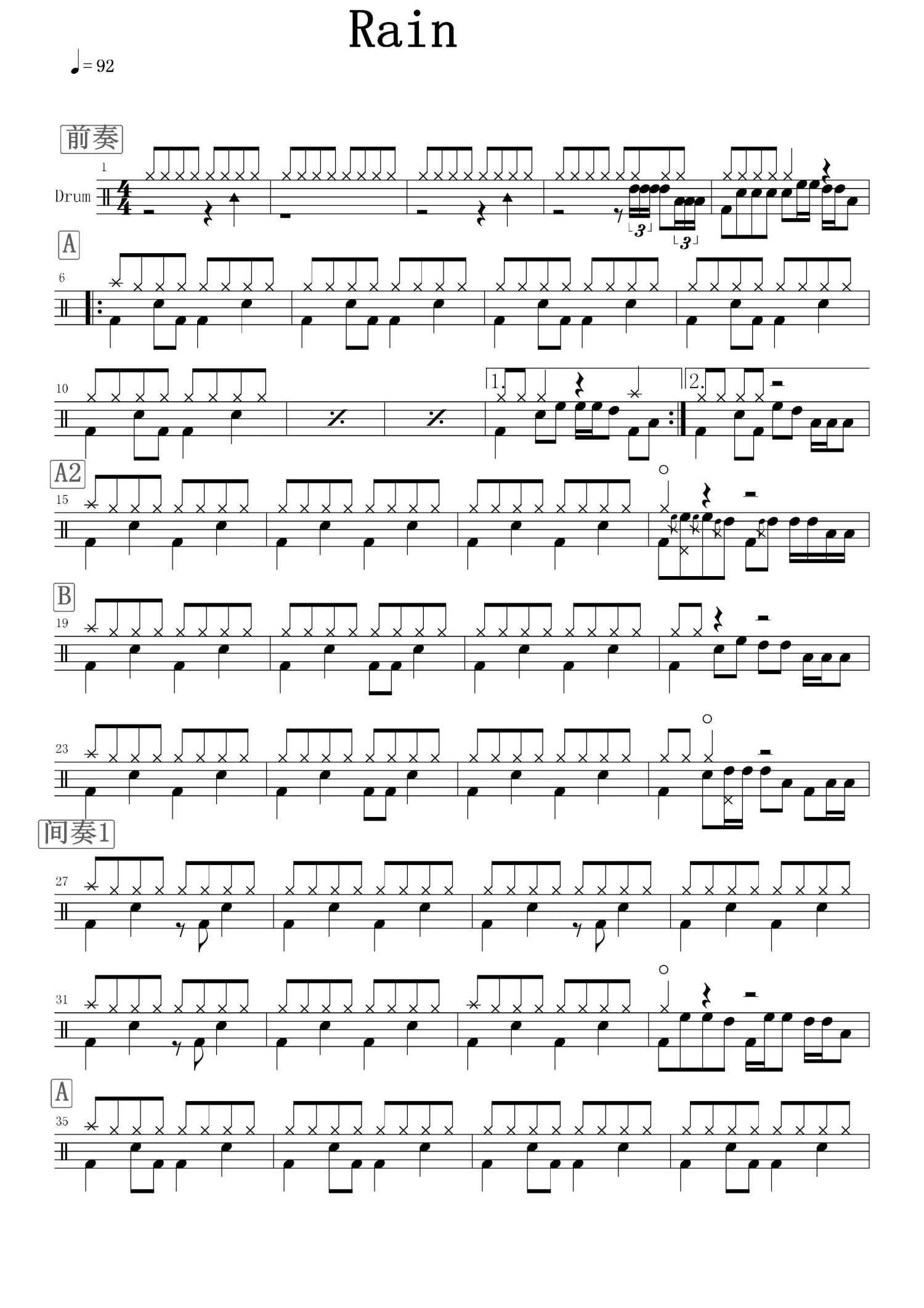 • Rain鼓谱 - 秦基博 - 架子鼓谱第1张