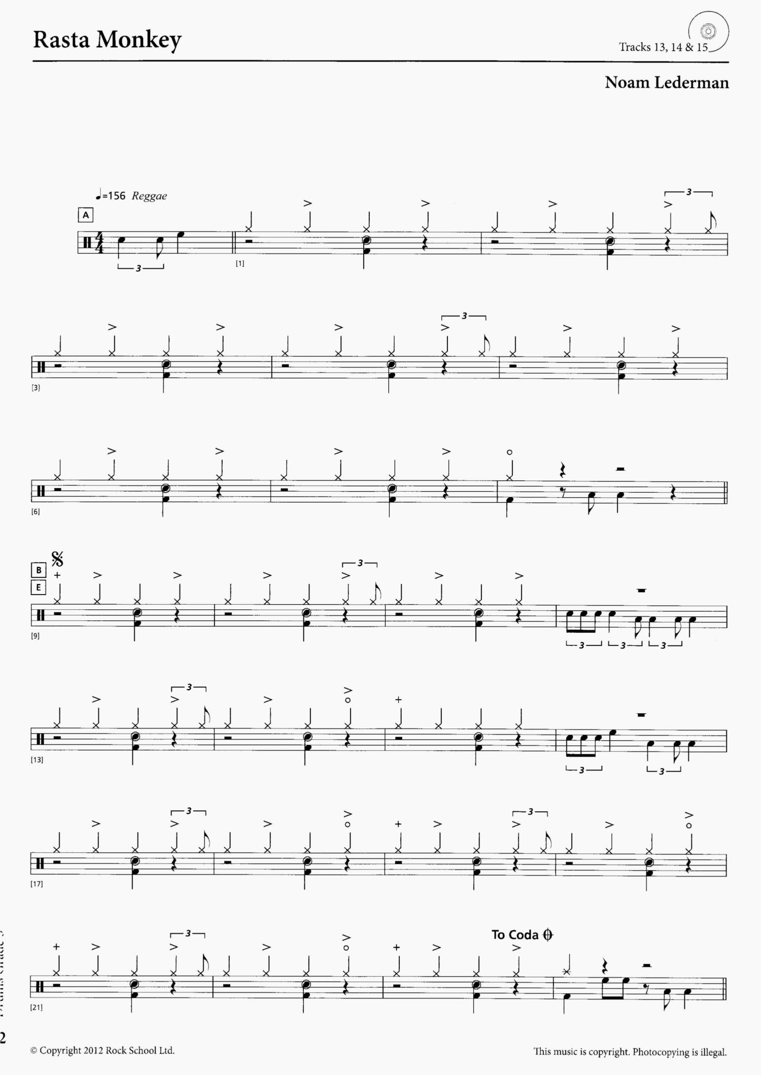 • 5 Rasta Monkey鼓谱 - 英皇Rock School - 架子鼓谱第1张
