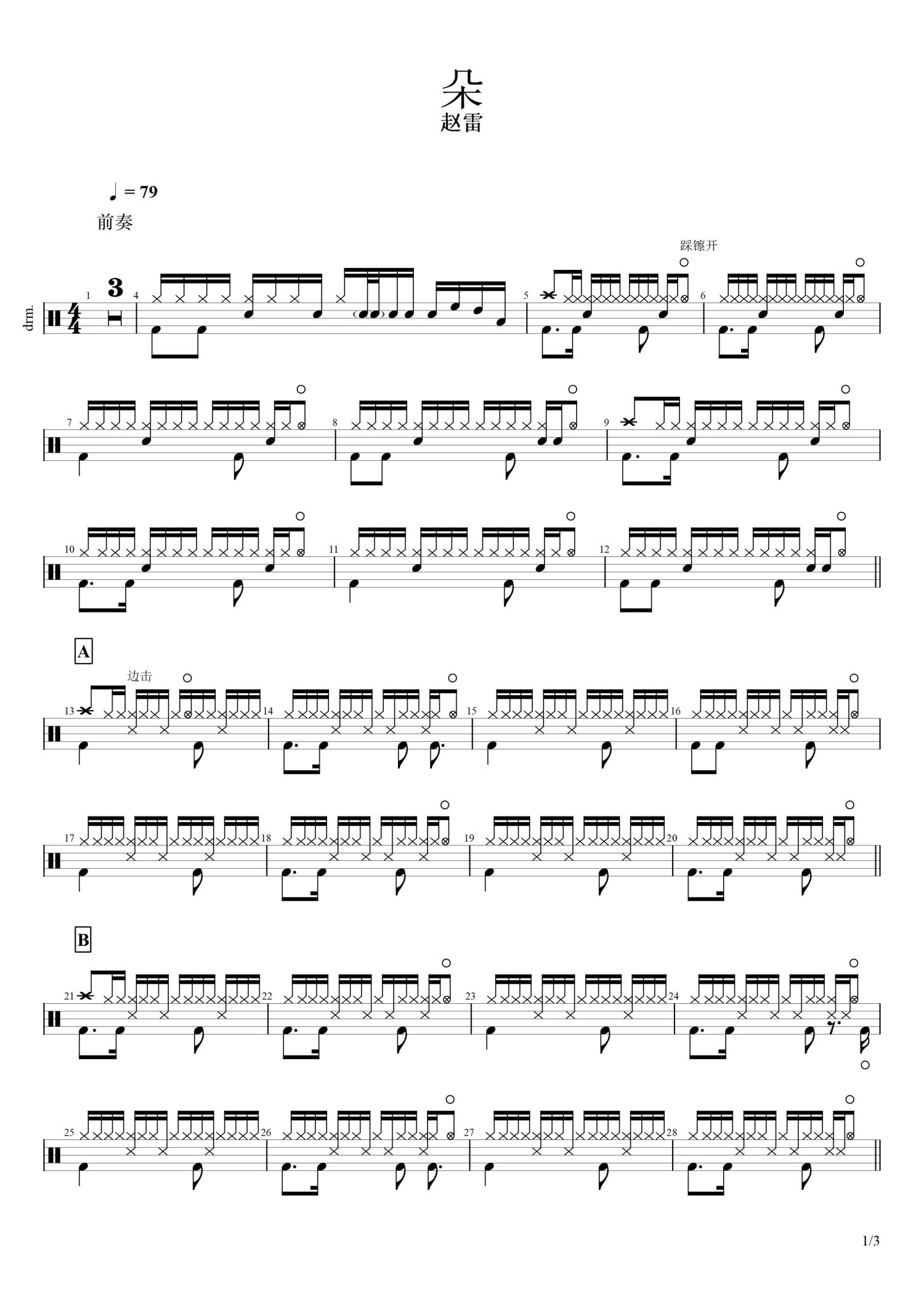 朵鼓谱 - 赵雷 - 架子鼓谱
