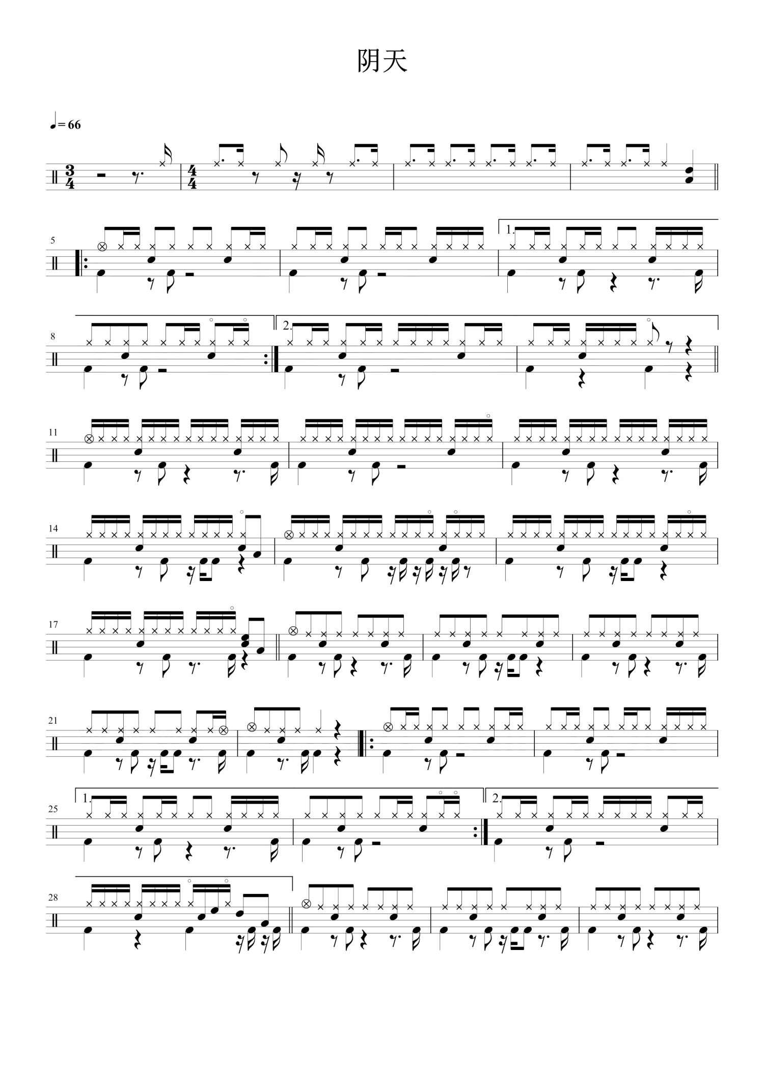 • 阴天鼓谱 - 莫文蔚 - 架子鼓谱第1张