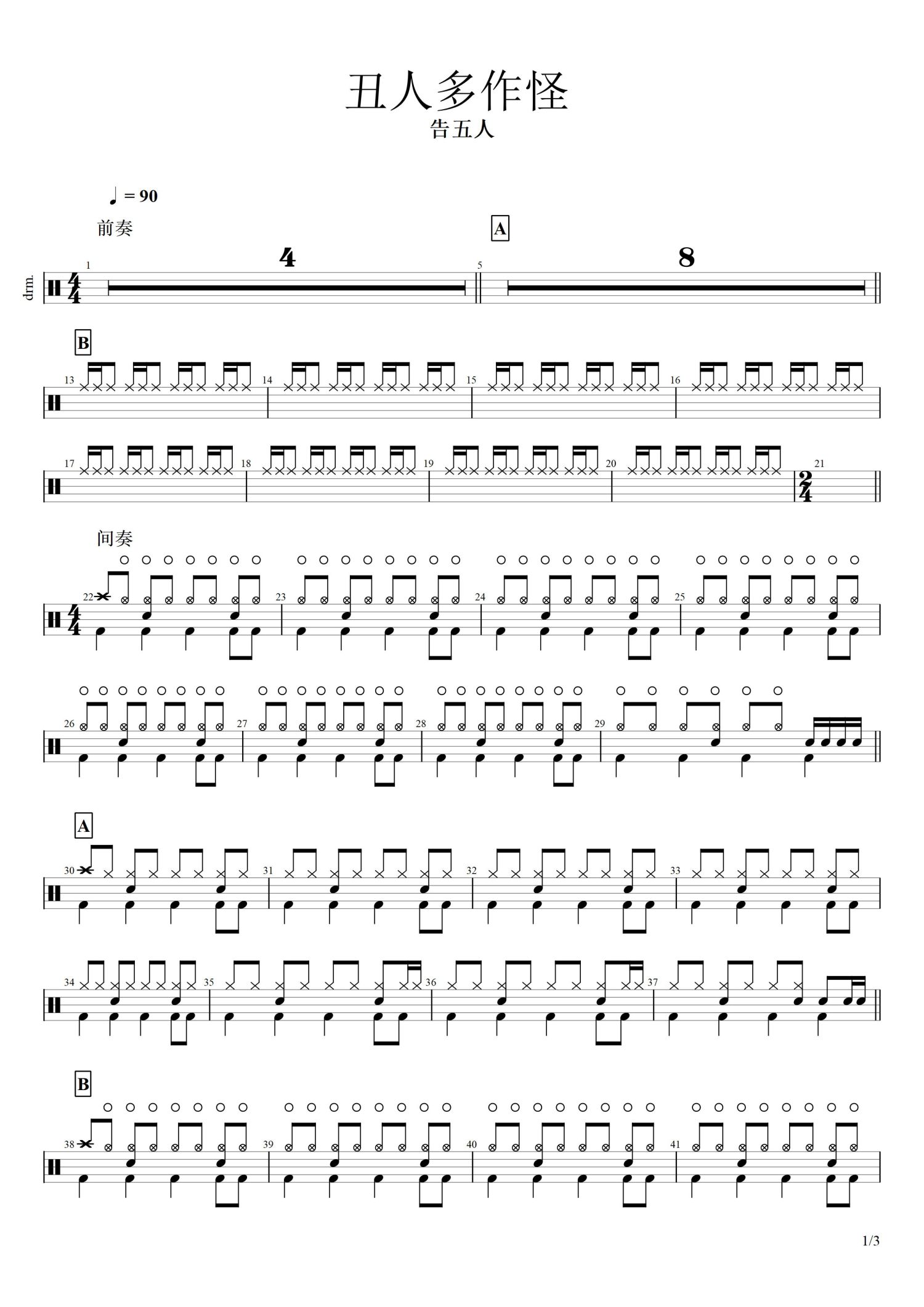 • 丑人多作怪鼓谱 - 告五人 - 架子鼓谱第1张