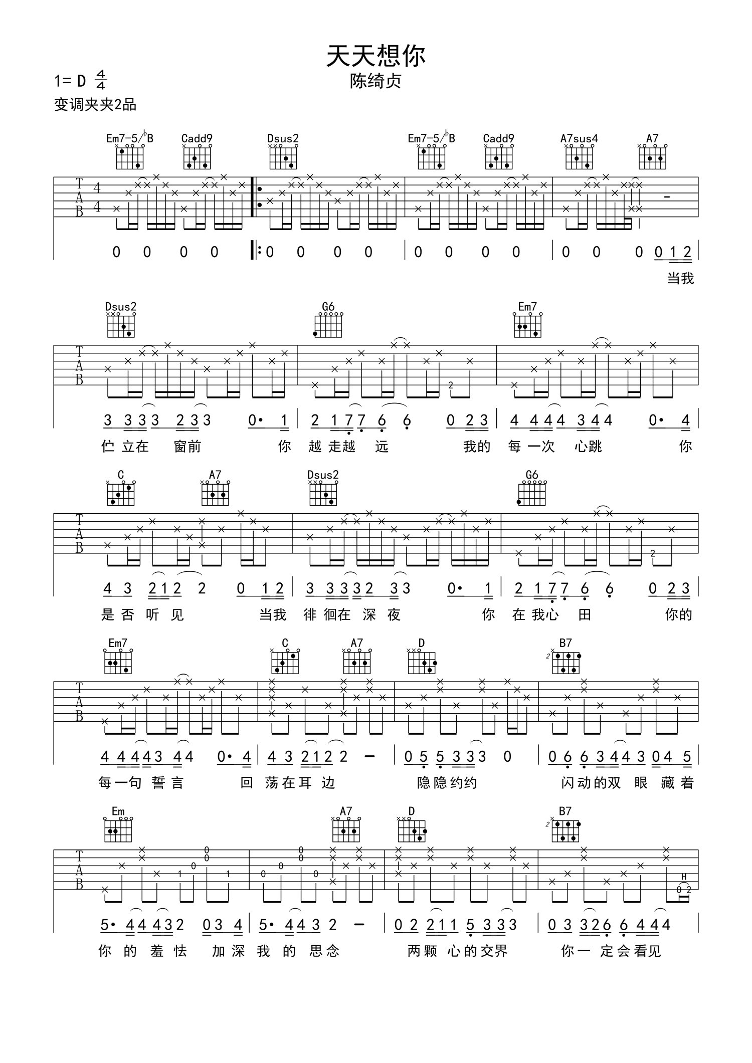 • 天天想你吉他谱 - 陈绮贞 - 吉他弹唱谱第1张