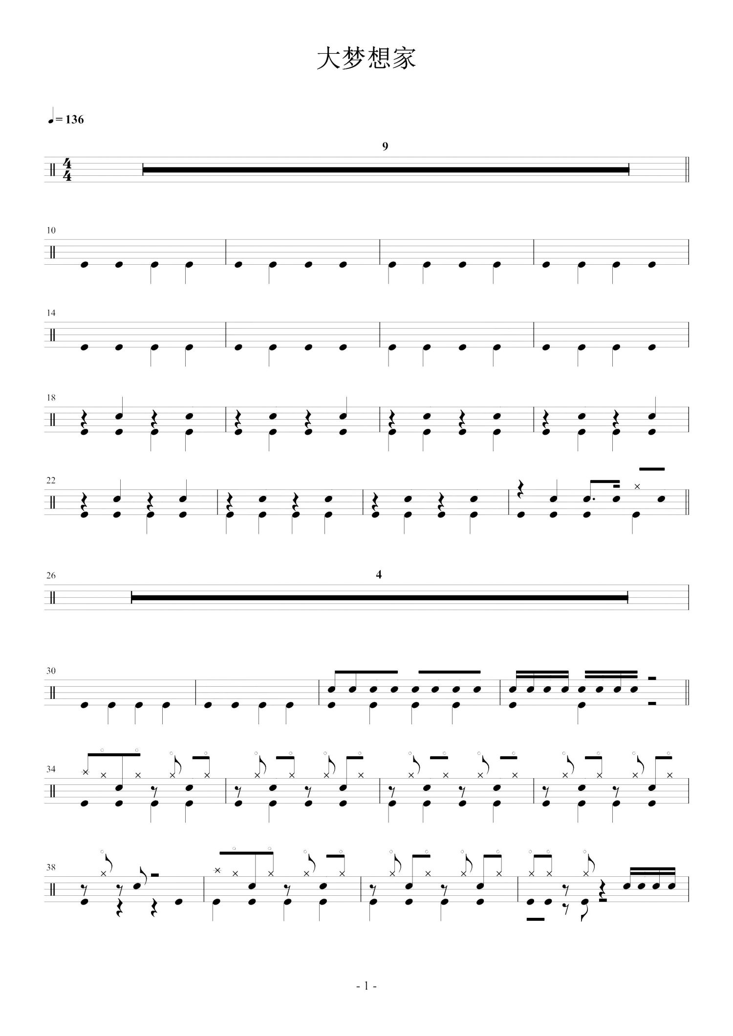 • 大梦想家鼓谱 - tfboys - 架子鼓谱第1张