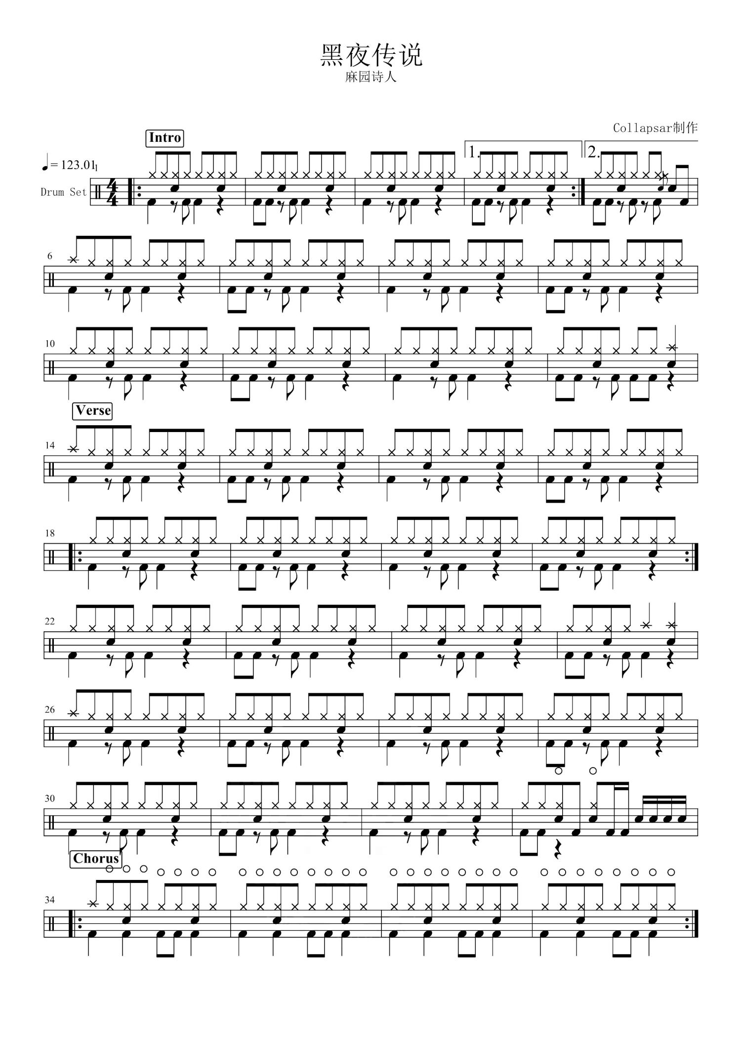 • 黑夜传说鼓谱 - 麻园诗人 - 架子鼓谱第1张