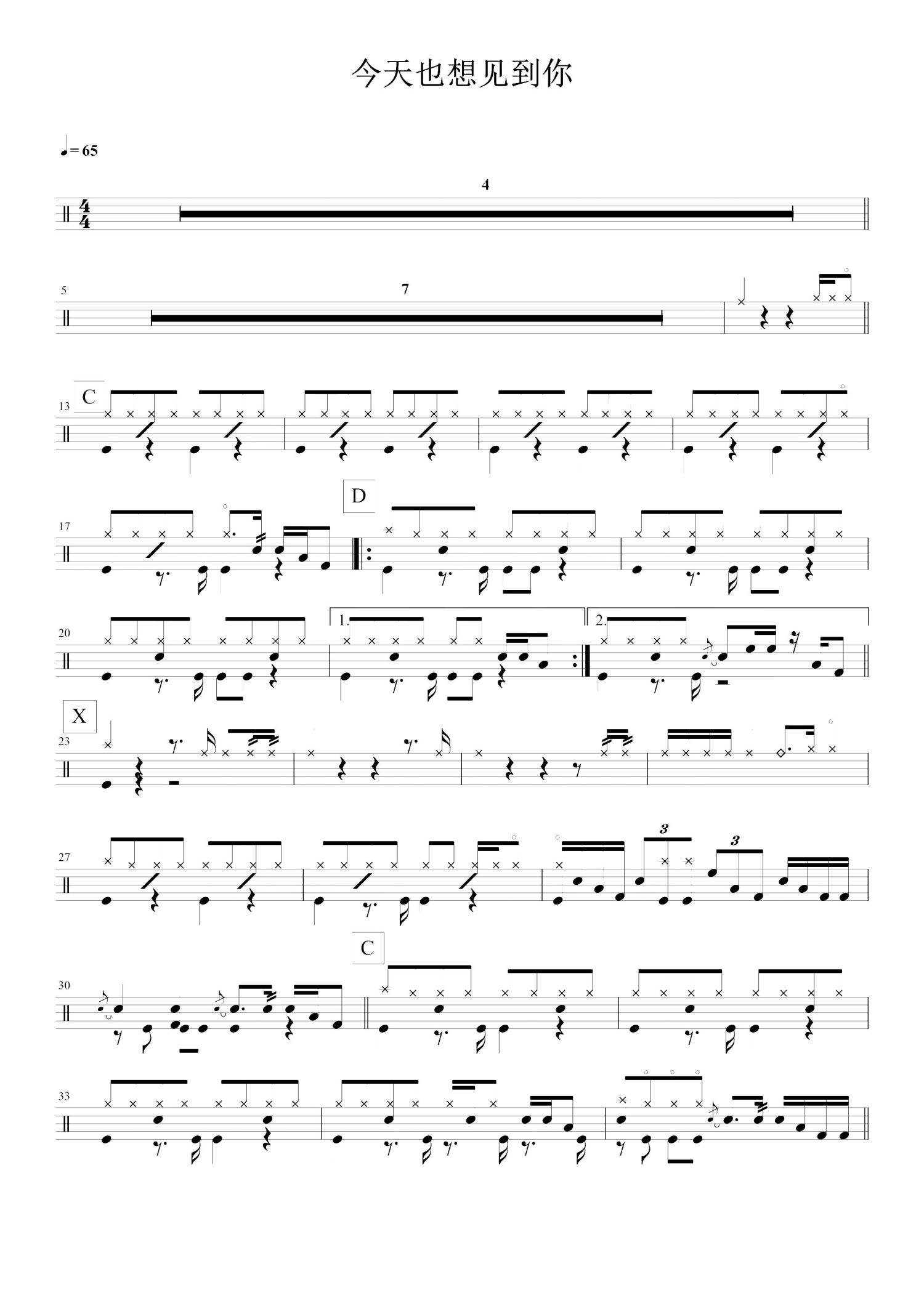 • 今天也想见到你鼓谱 - 焦迈奇 - 架子鼓谱第1张