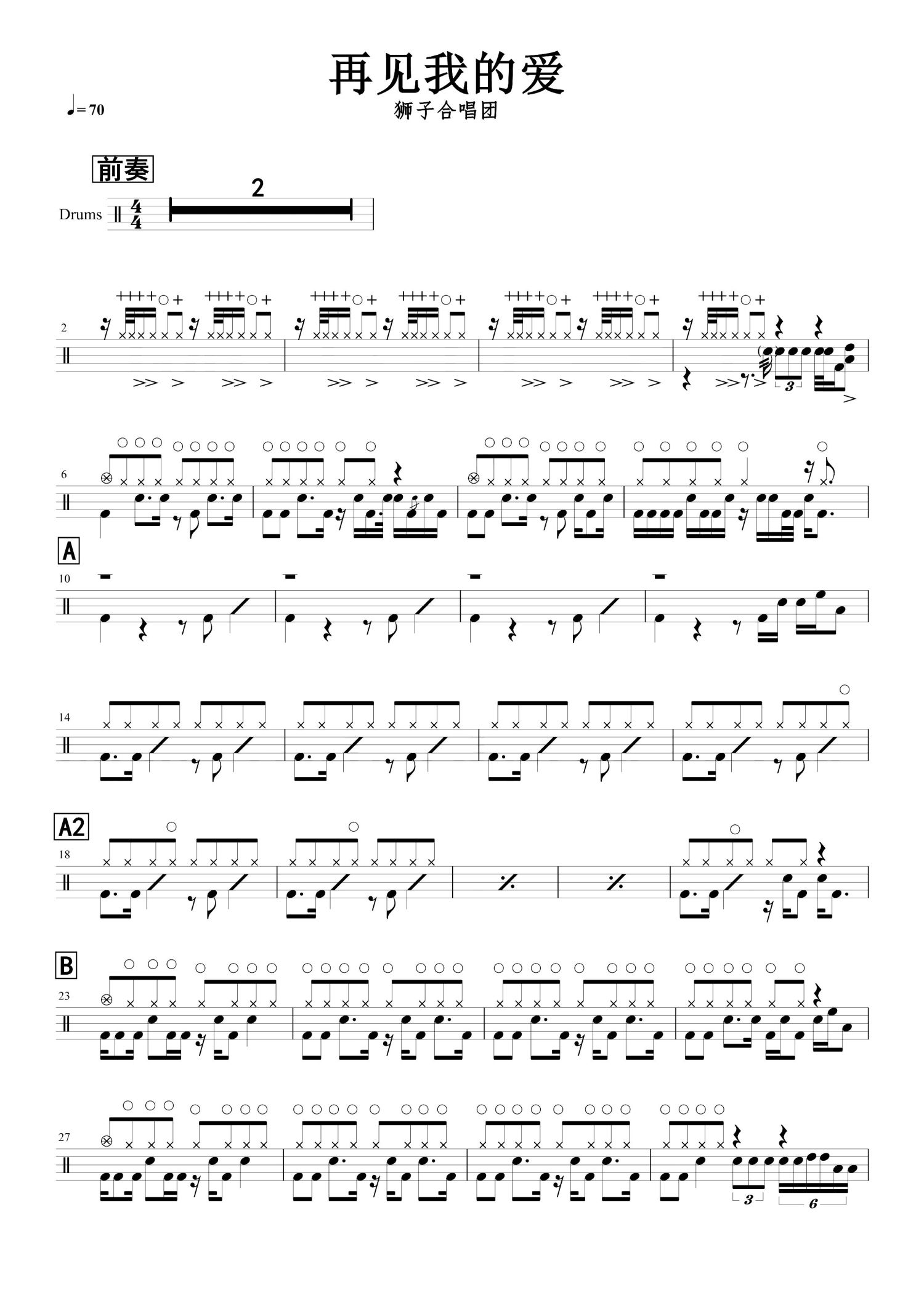 • 再见我的爱鼓谱 - 狮子合唱团 - 架子鼓谱第1张