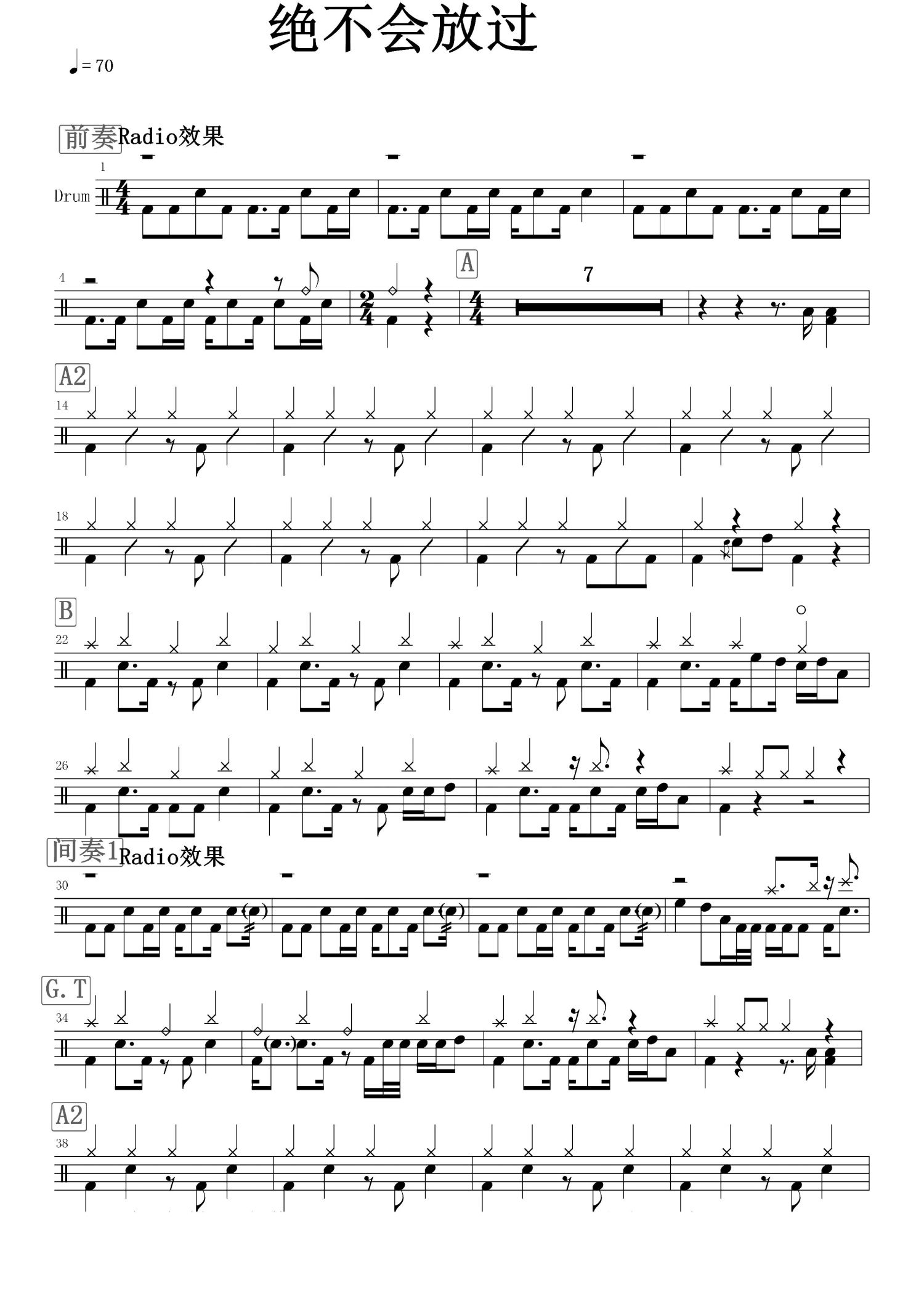 绝不会放过鼓谱 - 王亚东 - 架子鼓谱