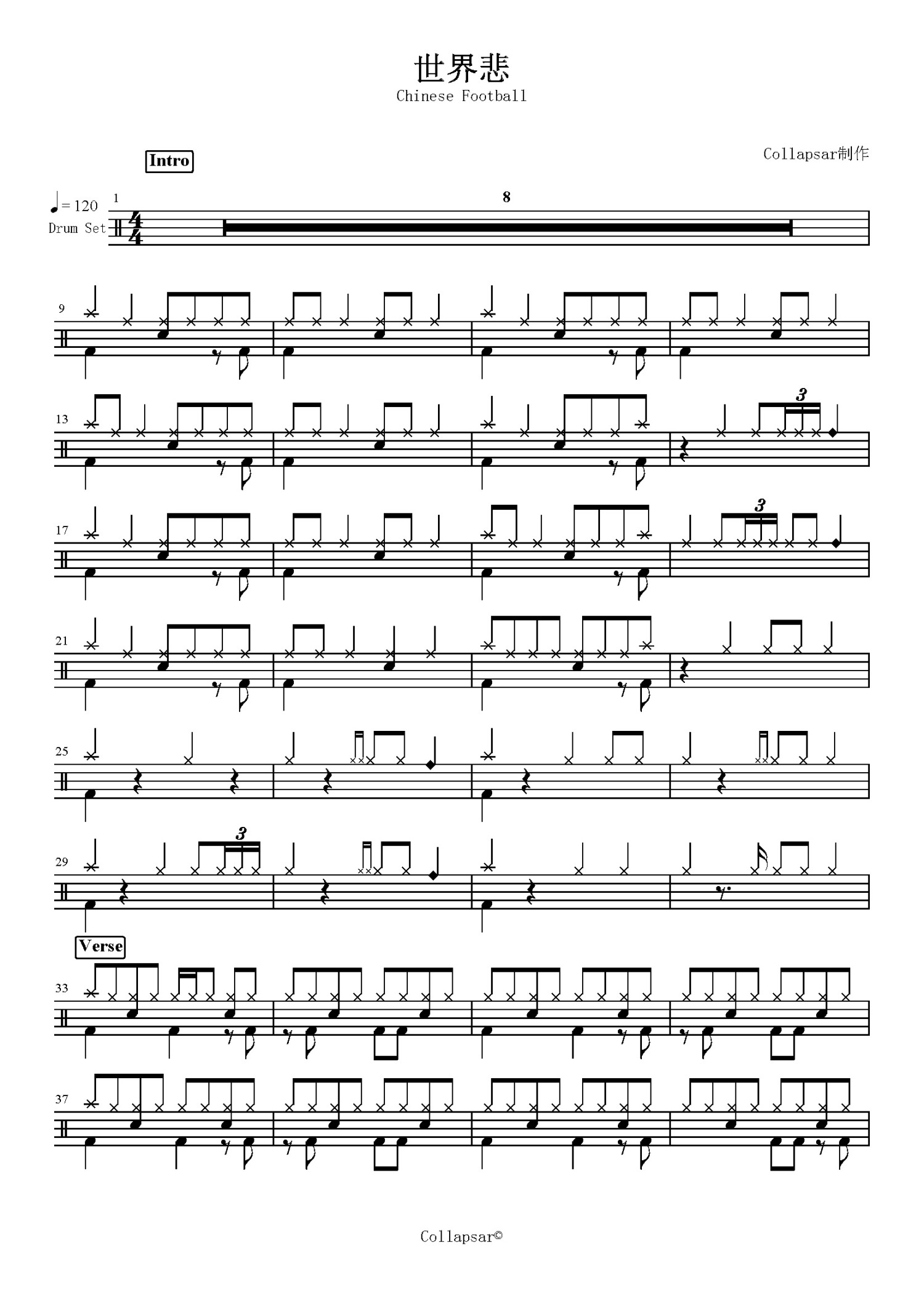 世界悲鼓谱 - Chinese Football - 架子鼓谱