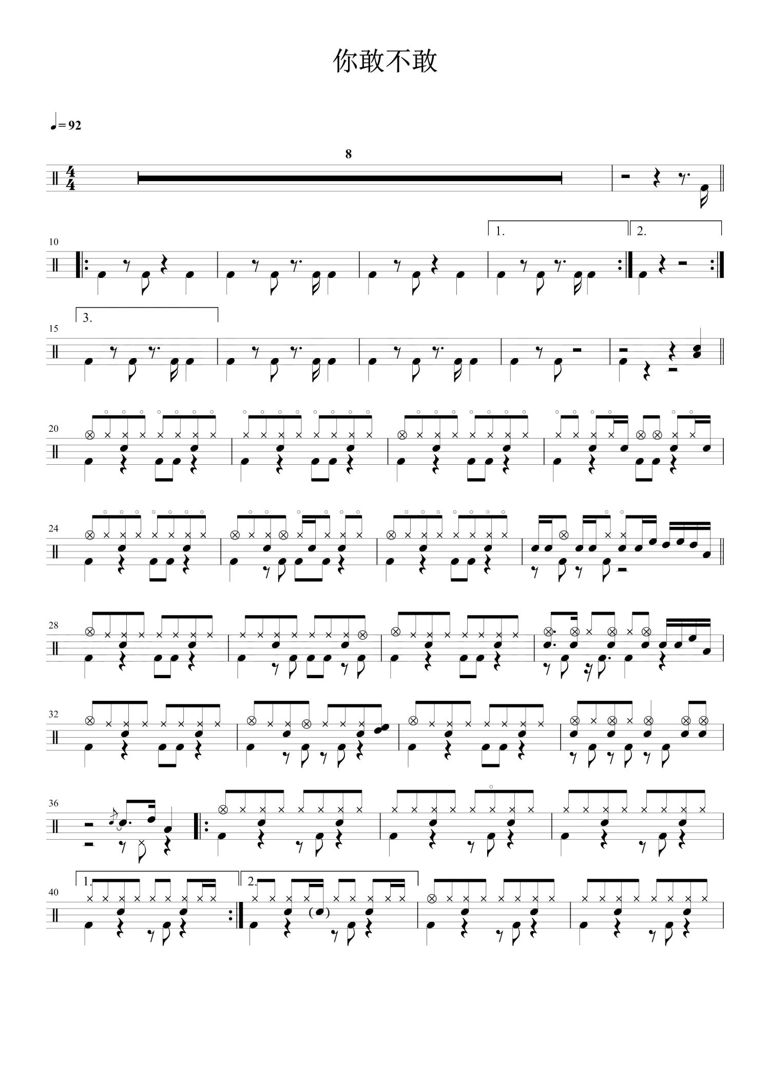 • 你敢不敢鼓谱 - 徐佳莹 - 架子鼓谱第1张