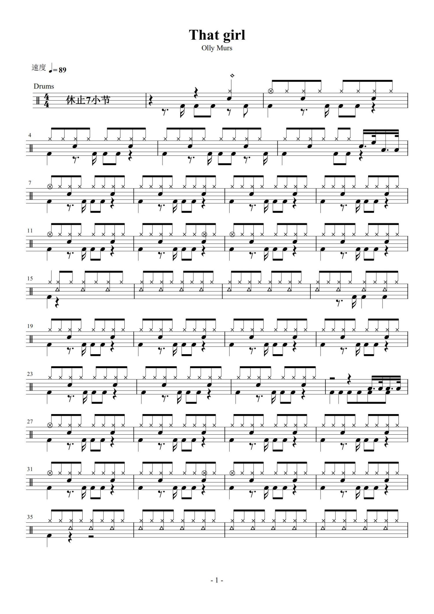 That Girl鼓谱 - Olly Murs(奥利·莫尔斯) - 架子鼓谱