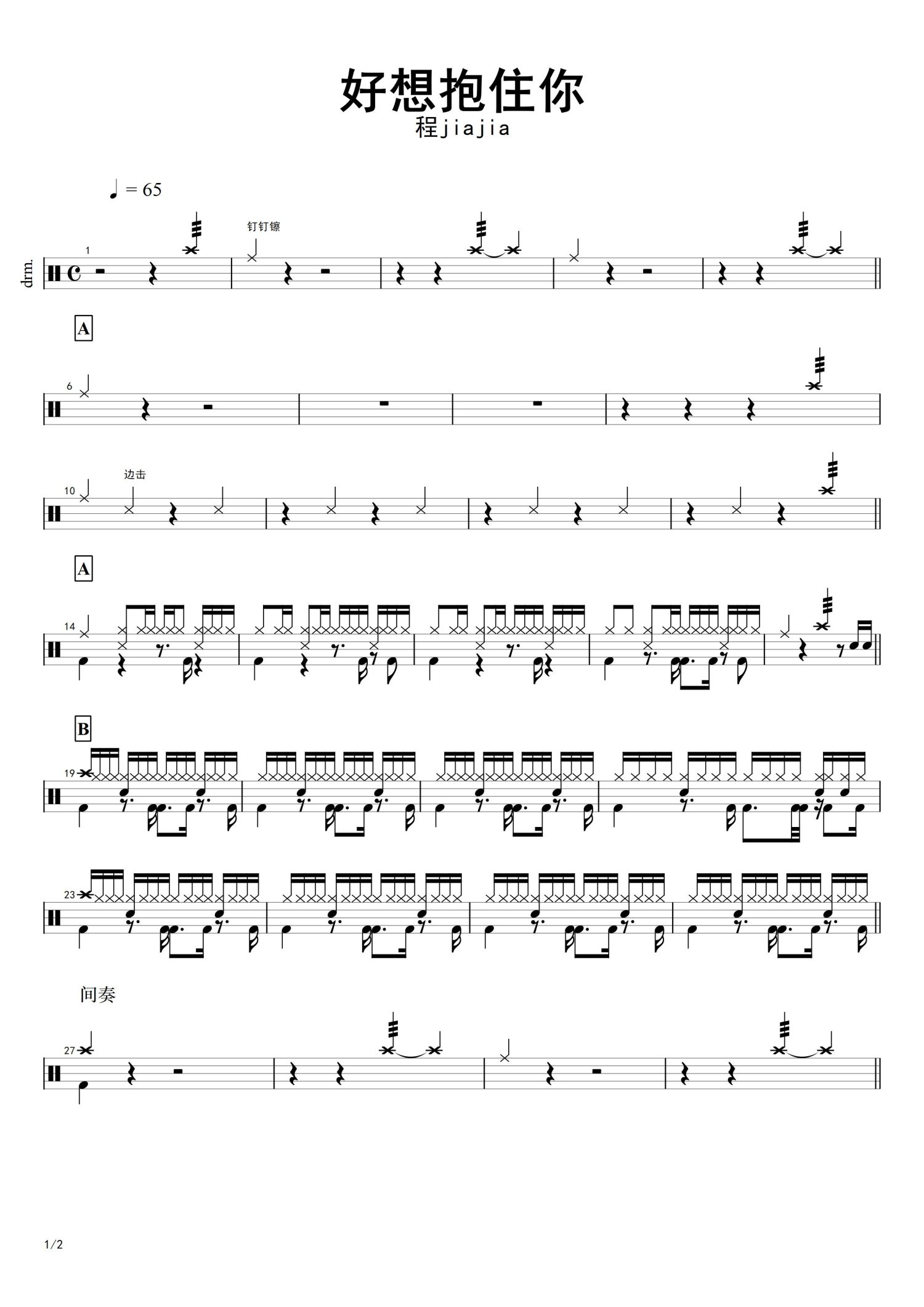 • 好想抱住你鼓谱 - 程jiajia - 架子鼓谱第1张