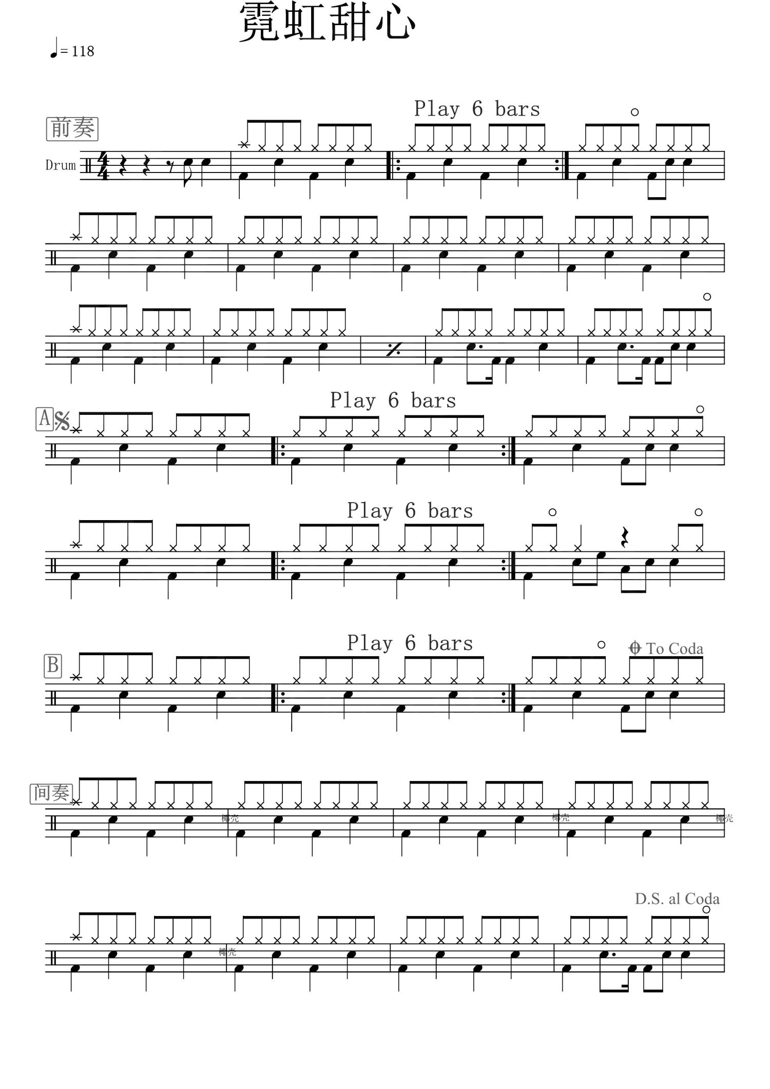 • 霓虹甜心鼓谱 - 马赛克乐队 - 架子鼓谱第1张