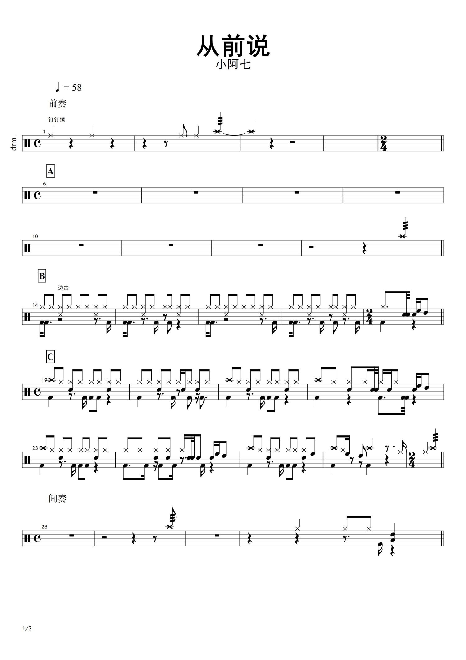 • 从前说鼓谱 - 小阿七 - 架子鼓谱第1张