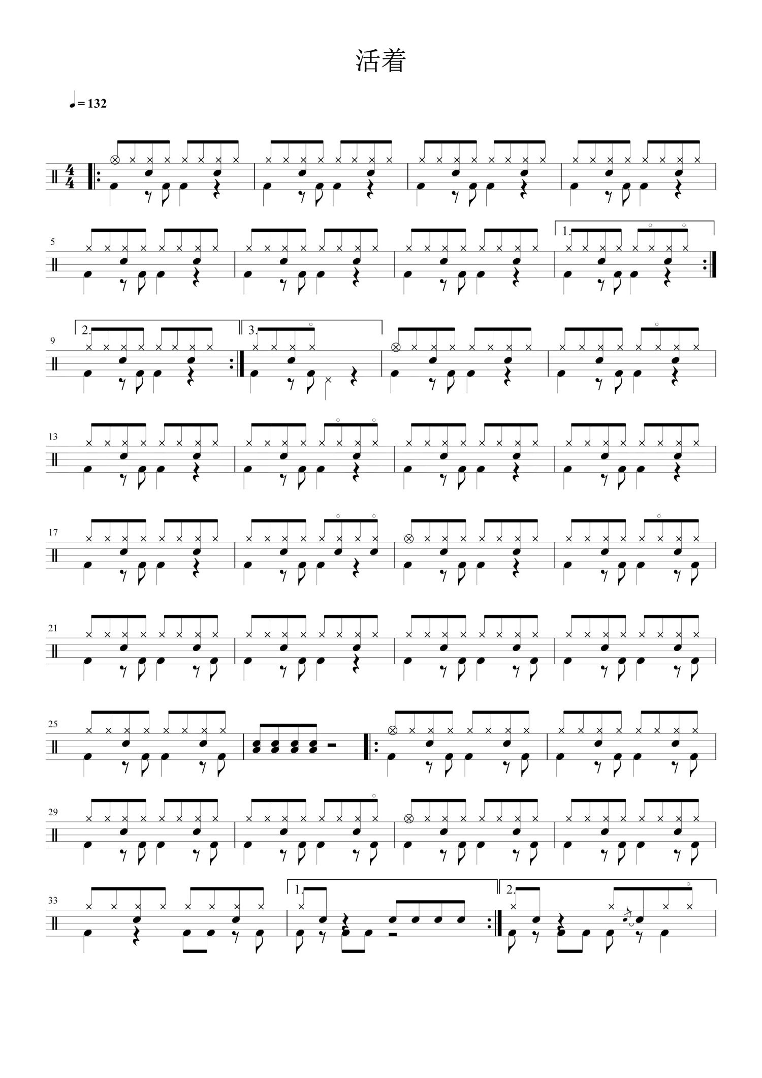 • 活着鼓谱 - 郝云 - 架子鼓谱第1张