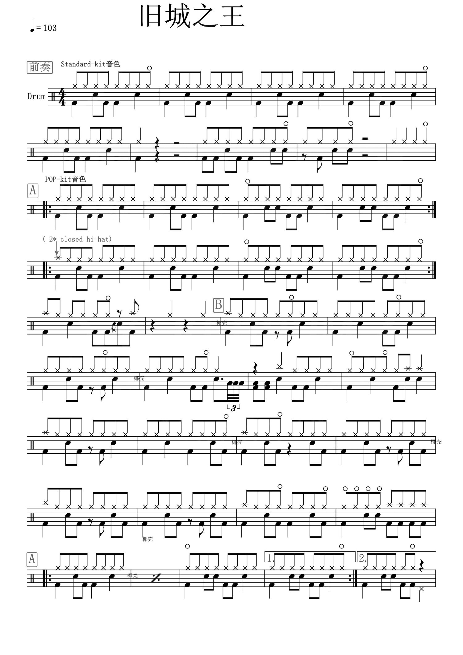 • 旧城之王鼓谱 - 木马乐队 - 架子鼓谱第1张