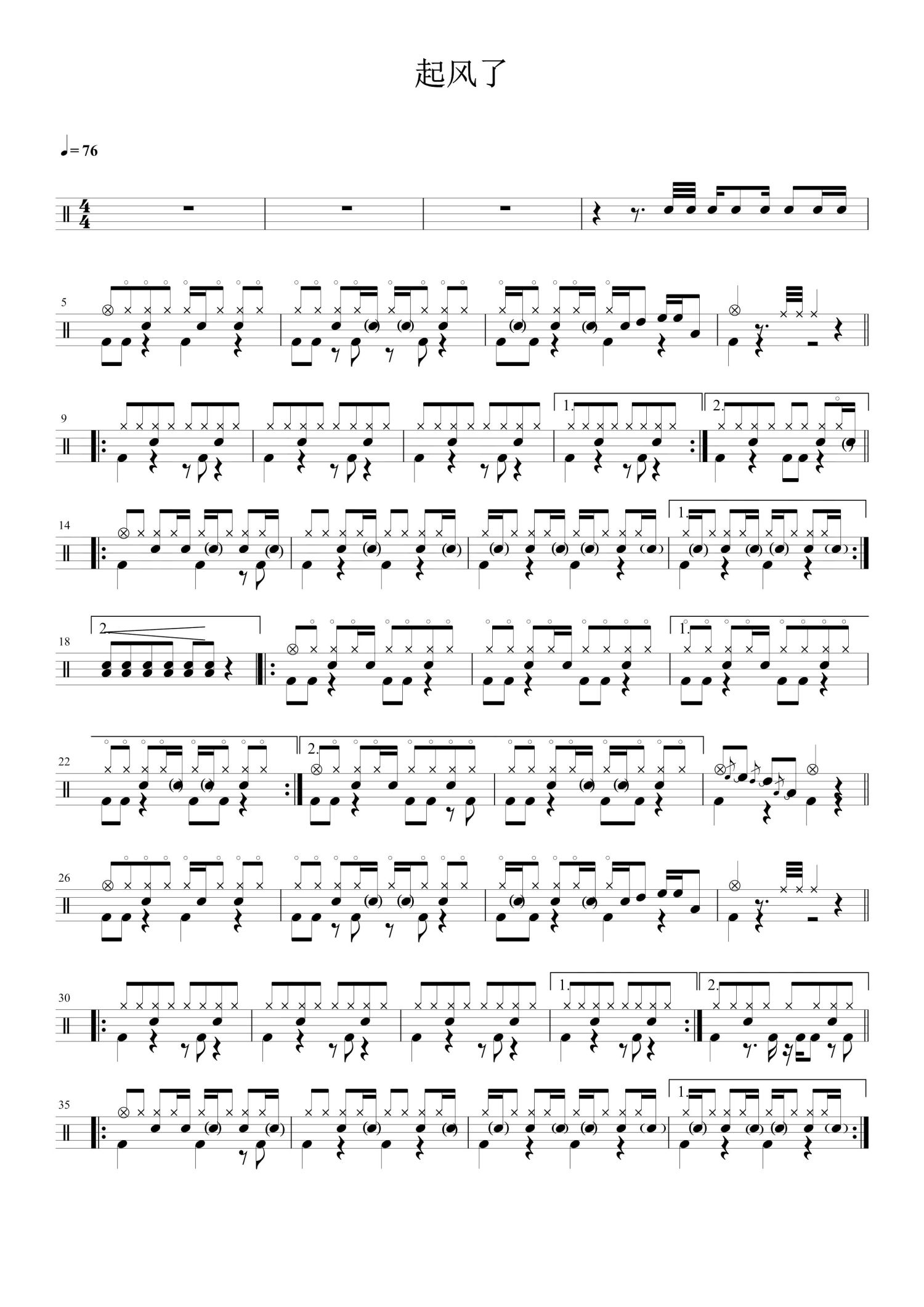 • 起风了鼓谱 - 买辣椒也用券 - 架子鼓谱第1张