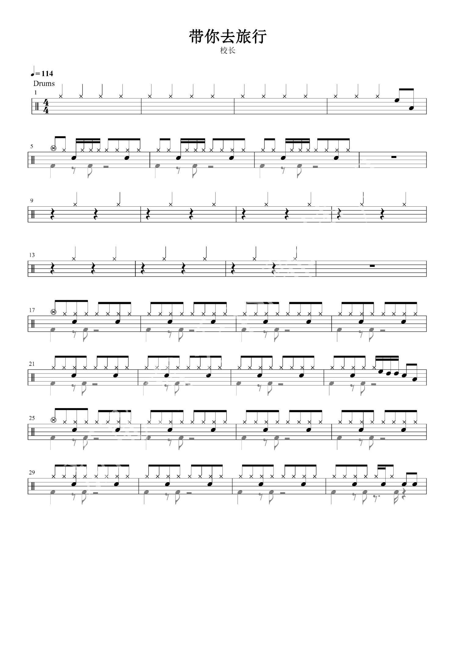 • 带你去旅行鼓谱 - 校长 - 架子鼓谱第1张