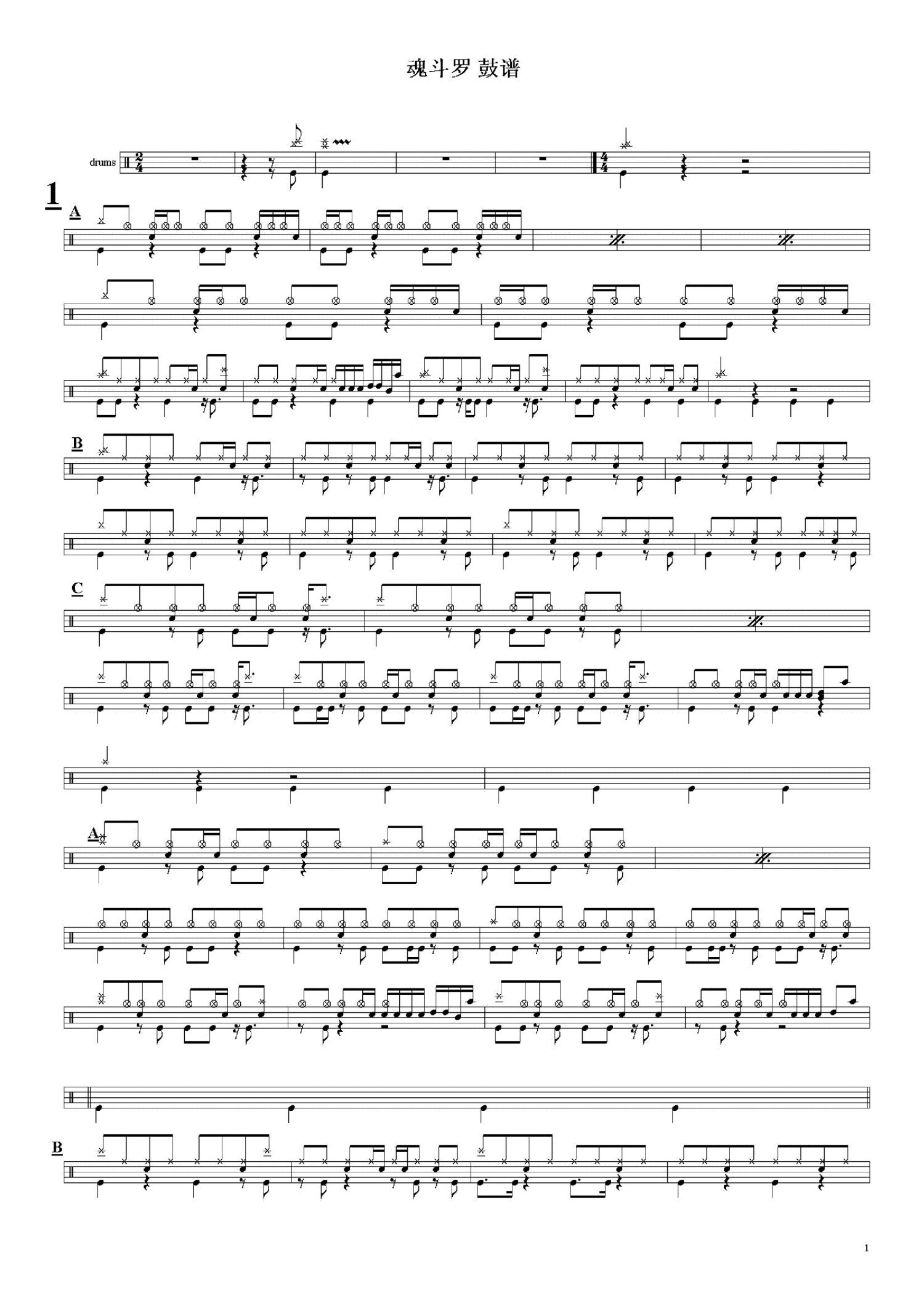 • 魂斗罗-游戏主题曲鼓谱 - 魂斗罗 - 架子鼓谱第1张