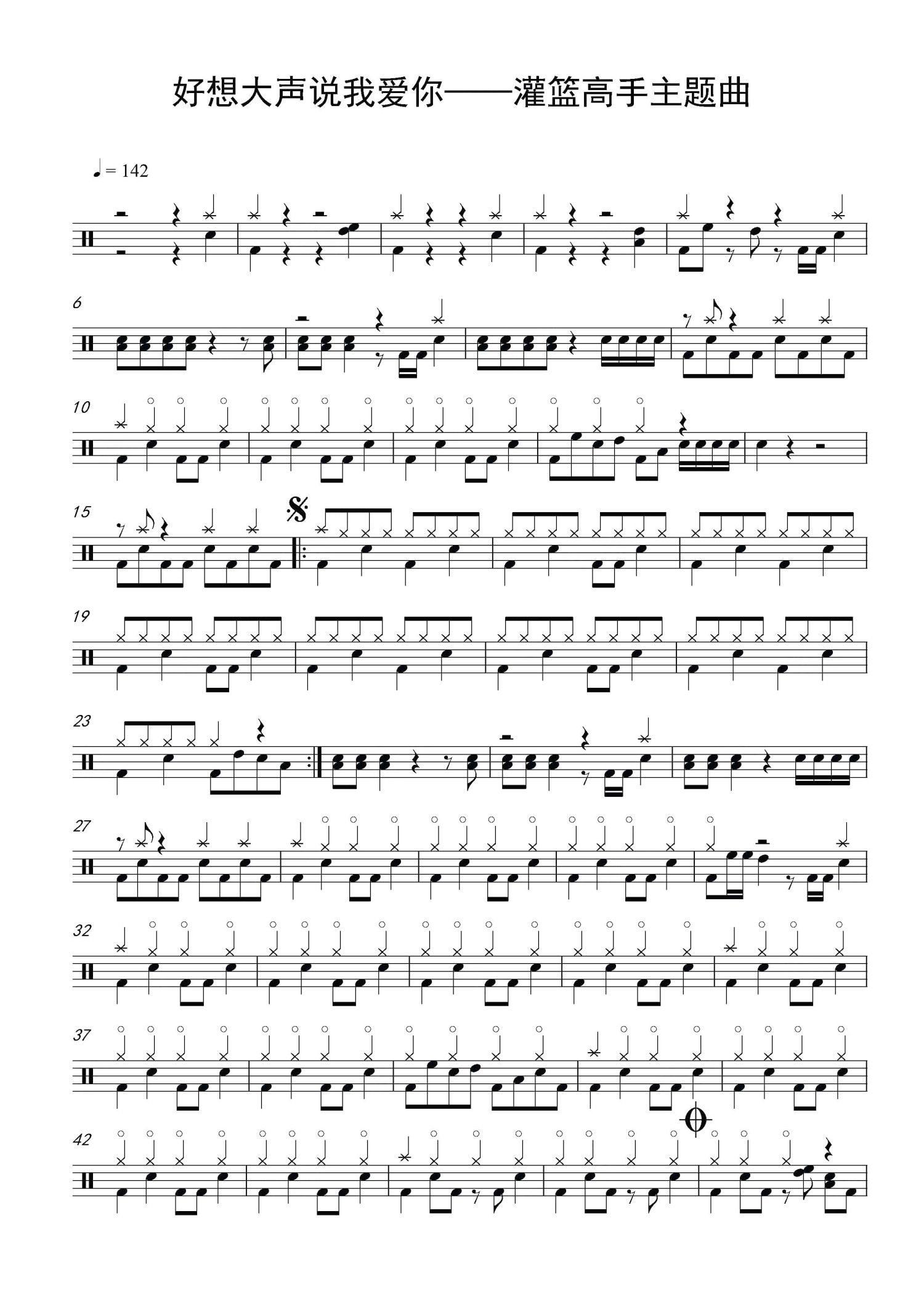 • 好想大声告诉你鼓谱 - 灌篮高手主题曲 - 架子鼓谱第1张