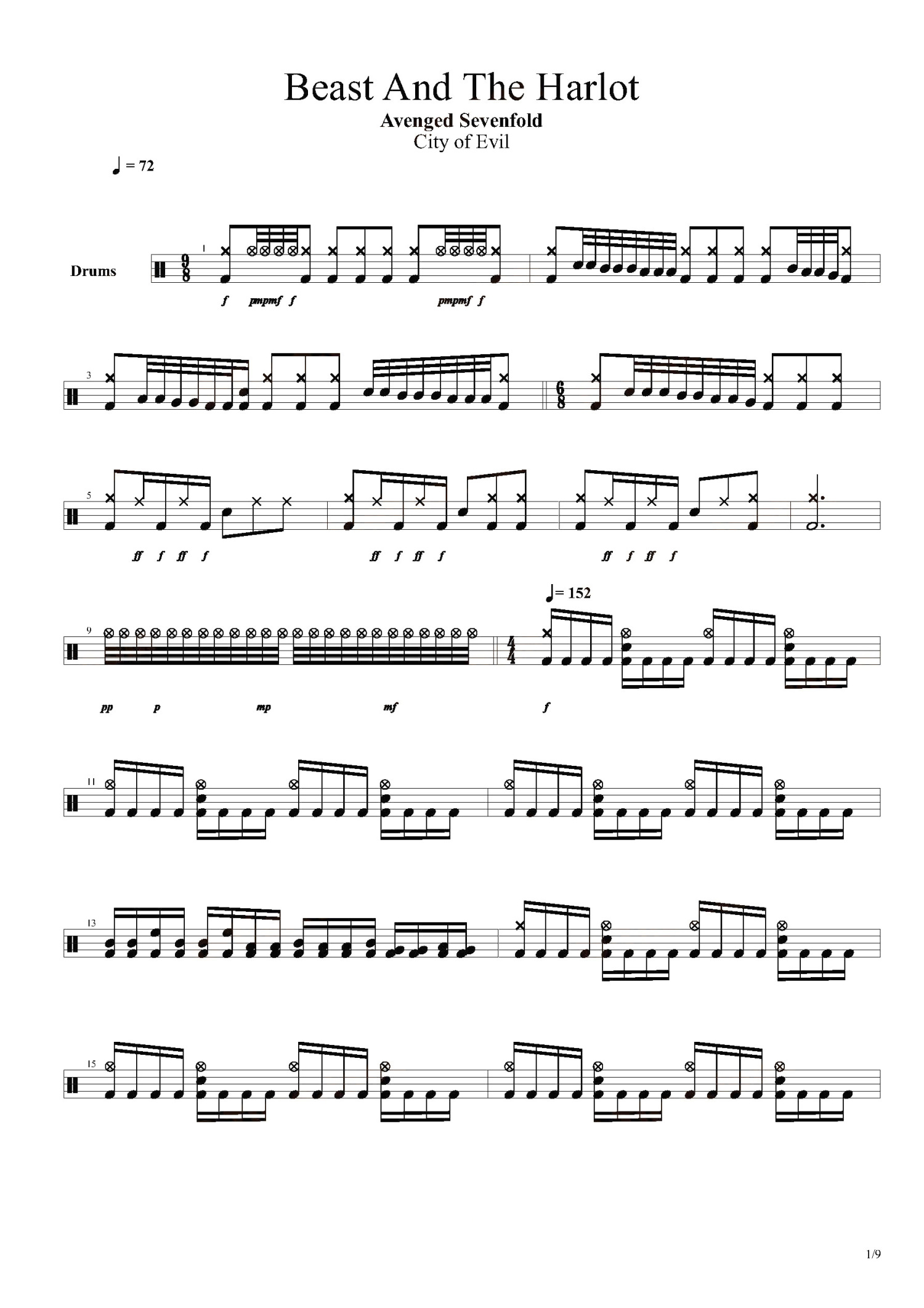 • Beast And The Harlot鼓谱 - Avenged Sevenfold - 架子鼓谱第1张