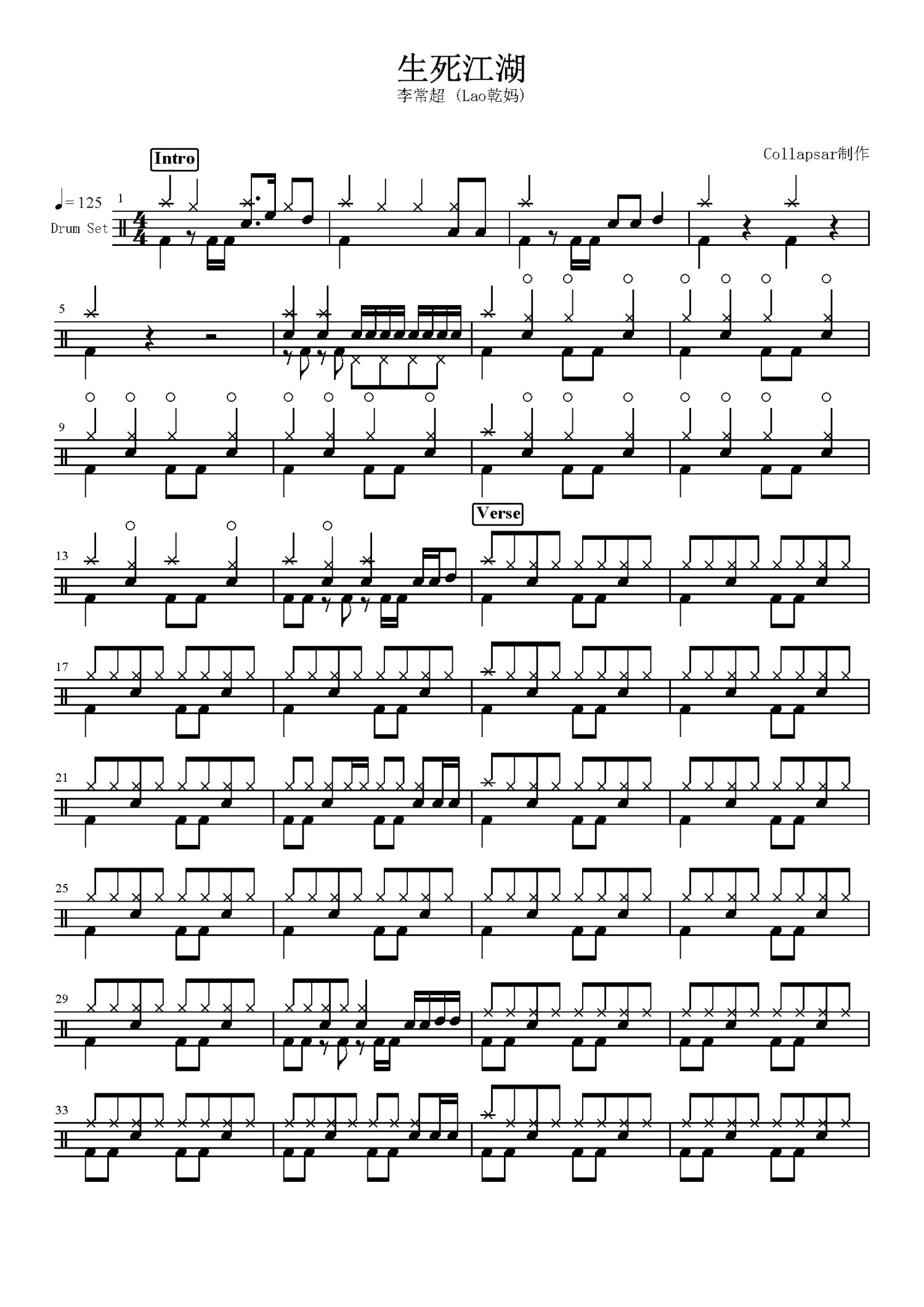 生死江湖鼓谱 - 李常超 - 架子鼓谱