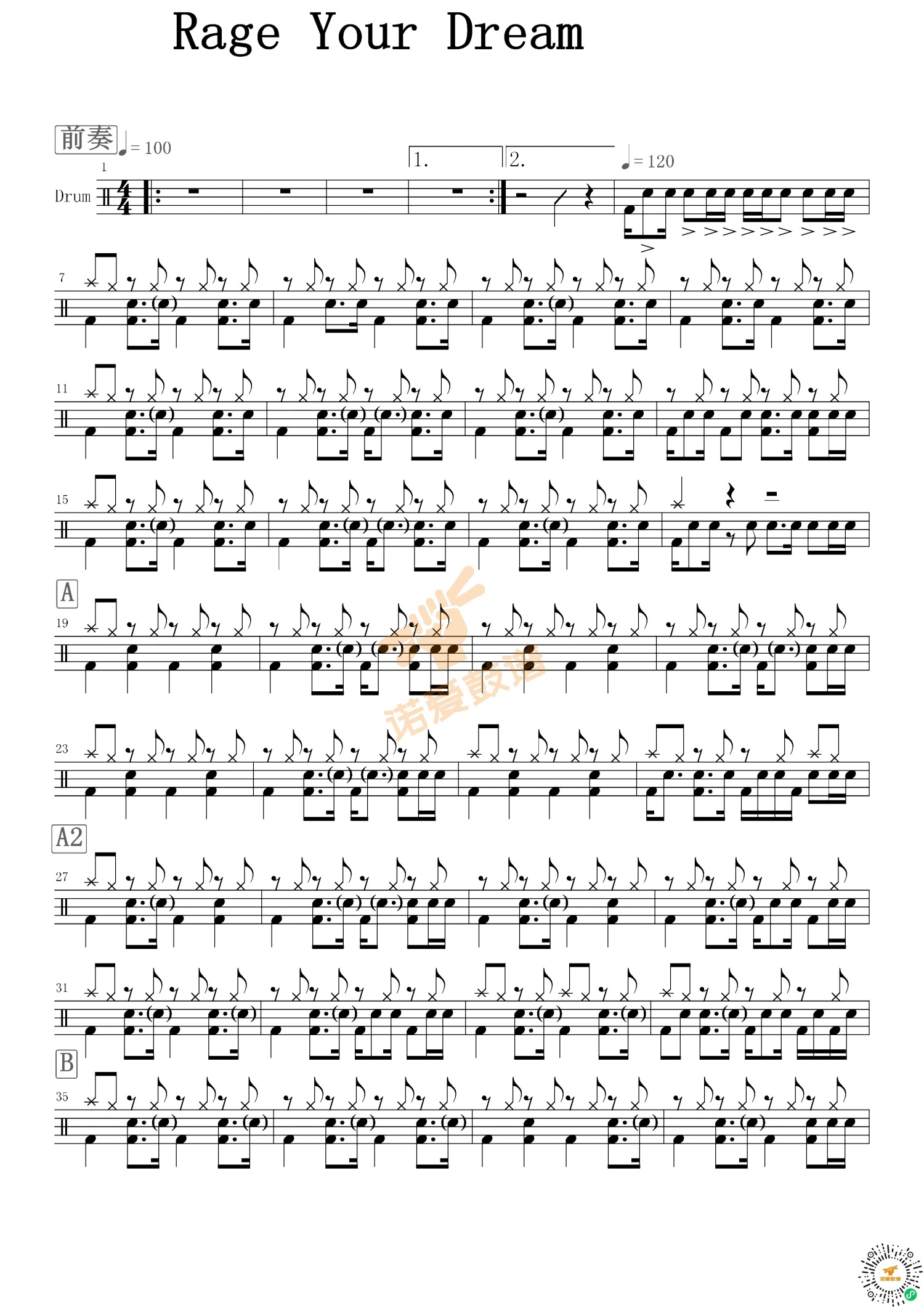 当前位置:琴谱网>架子鼓谱>Rage Your Dream