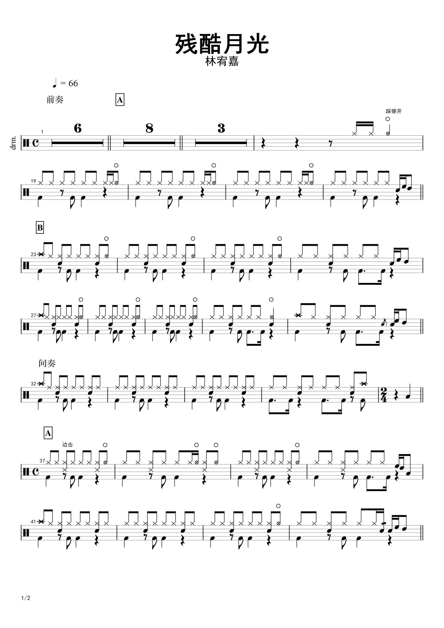 • 残酷月光鼓谱 - 林宥嘉 - 架子鼓谱第1张