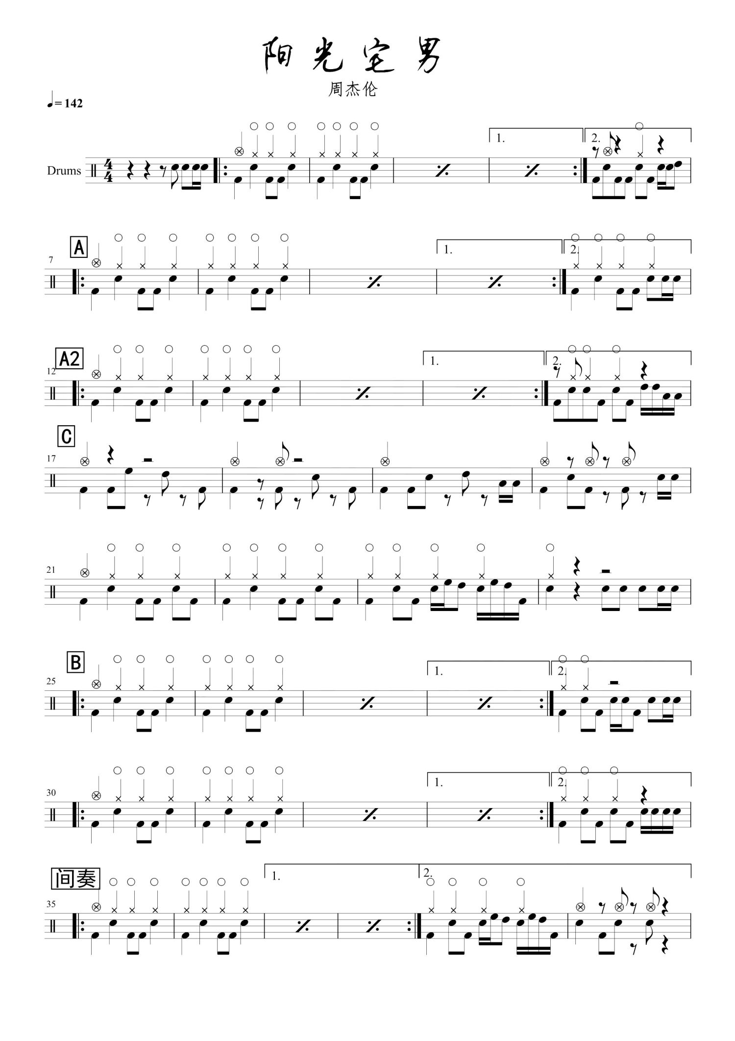 • 阳光宅男鼓谱 - 周杰伦 - 架子鼓谱第1张
