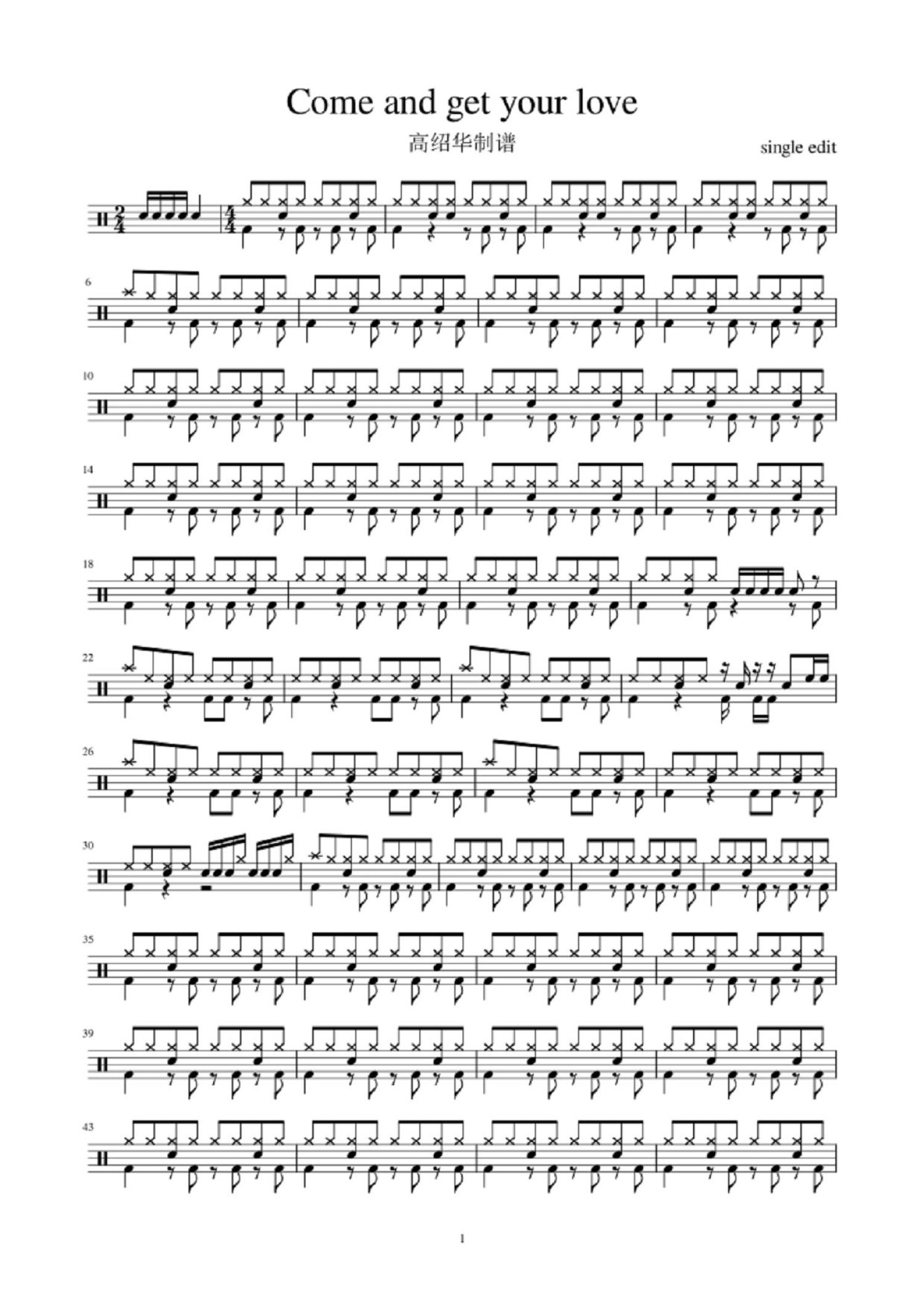 • come and get your love鼓谱 - 红骨头乐队 - 架子鼓谱第1张
