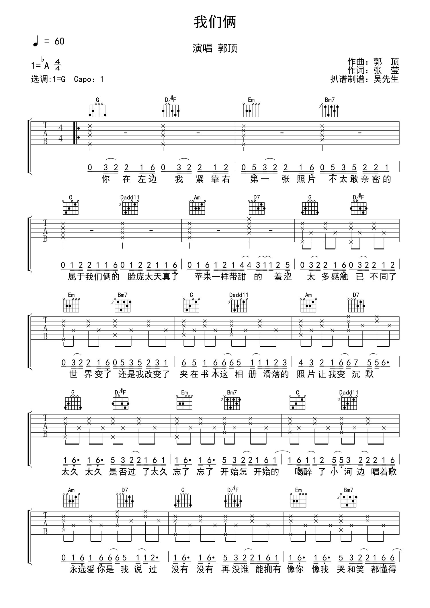 • 我们俩吉他谱 - 郭顶 - G调吉他弹唱谱第1张